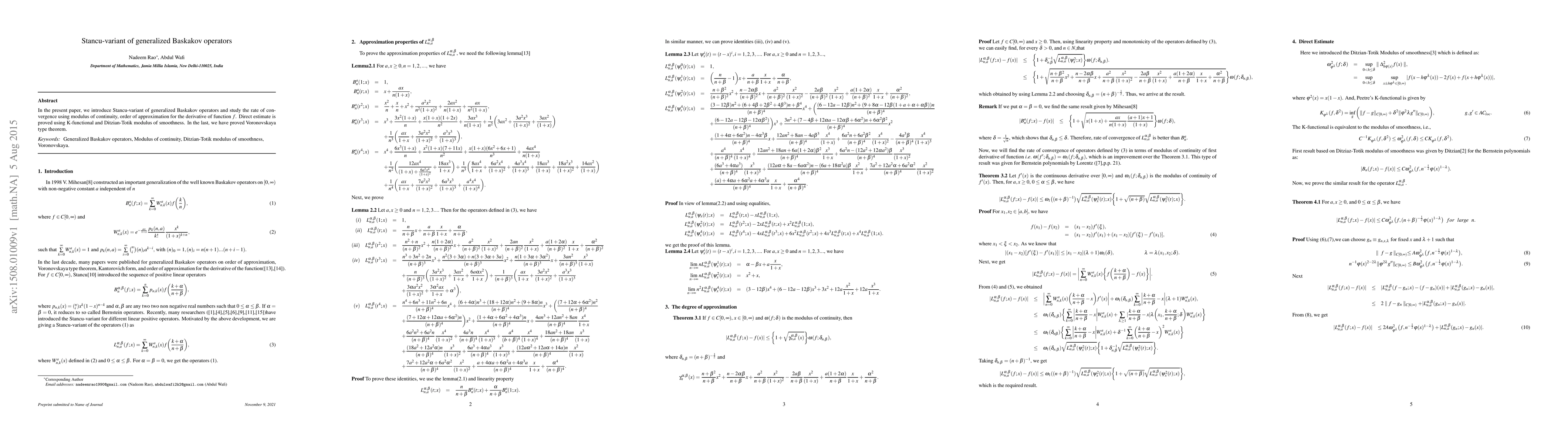 This paper introduces a Stancu-variant of generalized Baskakov operators and examines their convergence rate via modulus of continuity and K-functional. It also proves a Voronovskaya type theorem and uses Ditzian-Totik modulus of smoothness for direct estimates.