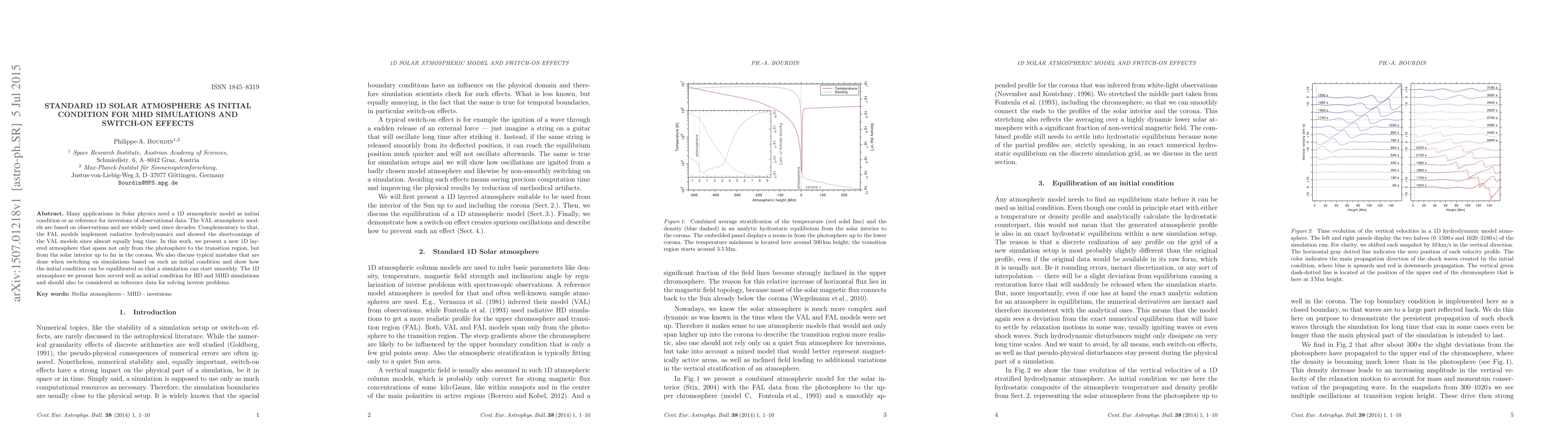 This paper introduces a new 1D layered solar atmosphere model extending from the solar interior to the corona, suitable for initial conditions in magnetohydrodynamic (MHD) simulations. It also addresses common errors in simulation setups and provides methods to equilibrate initial conditions for smooth starts.