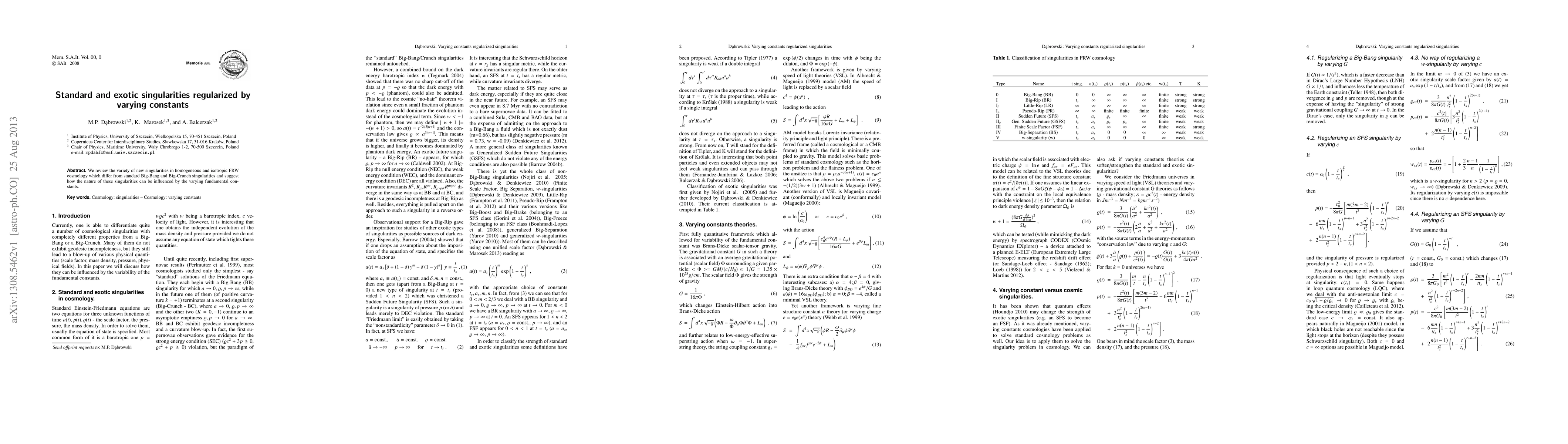 We review the variety of new singularities in homogeneous and isotropic FRW cosmology which differ from standard Big-Bang and Big-Crunch singularities and suggest how the nature of these singularities can be influenced by the varying fundamental constants.