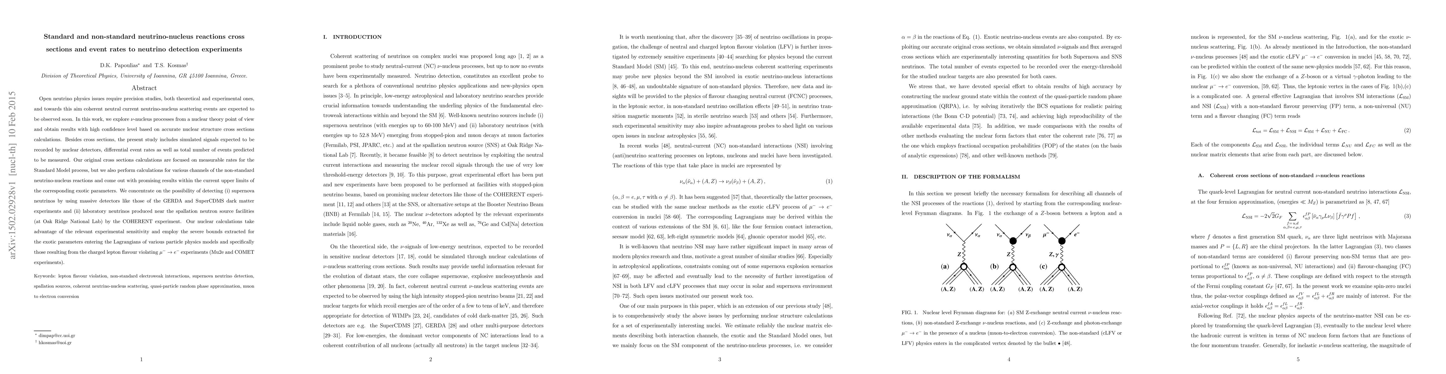 Open neutrino physics issues require precision studies, both theoretical and experimental ones, and towards this aim coherent neutral current neutrino-nucleus scattering events are expected to be observed soon. In this work, we explore $\nu$-nucleus processes from a nuclear theory point of view and obtain results with high confidence level based on accurate nuclear structure cross sections calculations. Besides cross sections, the present study includes simulated signals expected to be recorded by nuclear detectors, differential event rates as well as total number of events predicted to be measured. Our original cross sections calculations are focused on measurable rates for the Standard Model process, but we also perform calculations for various channels of the non-standard neutrino-nucleus reactions and come out with promising results within the current upper limits of the corresponding exotic parameters. We concentrate on the possibility of detecting (i) supernova neutrinos by using massive detectors like those of the GERDA and SuperCDMS dark matter experiments and (ii) laboratory neutrinos produced near the spallation neutron source facilities (at Oak Ridge National Lab) by the COHERENT experiment. Our nuclear calculations take advantage of the relevant experimental sensitivity and employ the severe bounds extracted for the exotic parameters entering the Lagrangians of various particle physics models and specifically those resulting from the charged lepton flavour violating $\mu^{-} \rightarrow e^{-}$ experiments (Mu2e and COMET experiments).