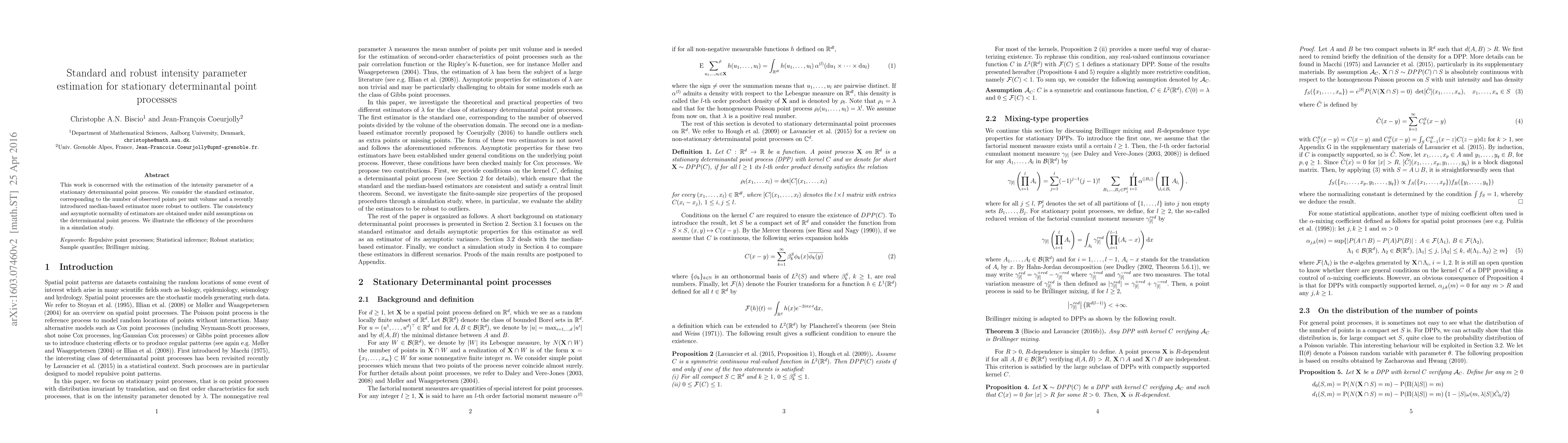 This paper estimates the intensity parameter of a stationary determinantal point process using both a standard and a robust median-based estimator. It proves the consistency and asymptotic normality of these estimators under mild conditions and demonstrates their efficiency through simulations.