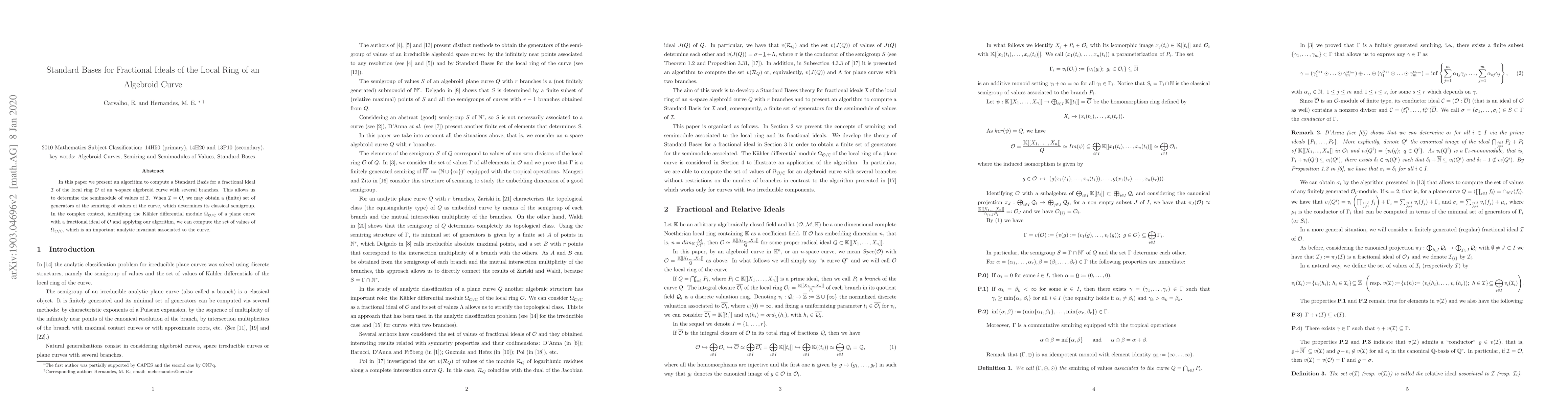 Researchers developed an algorithm to compute a Standard Basis for fractional ideals in the local ring of an algebroid curve, enabling the determination of semimodule values and classical semigroup generators.
