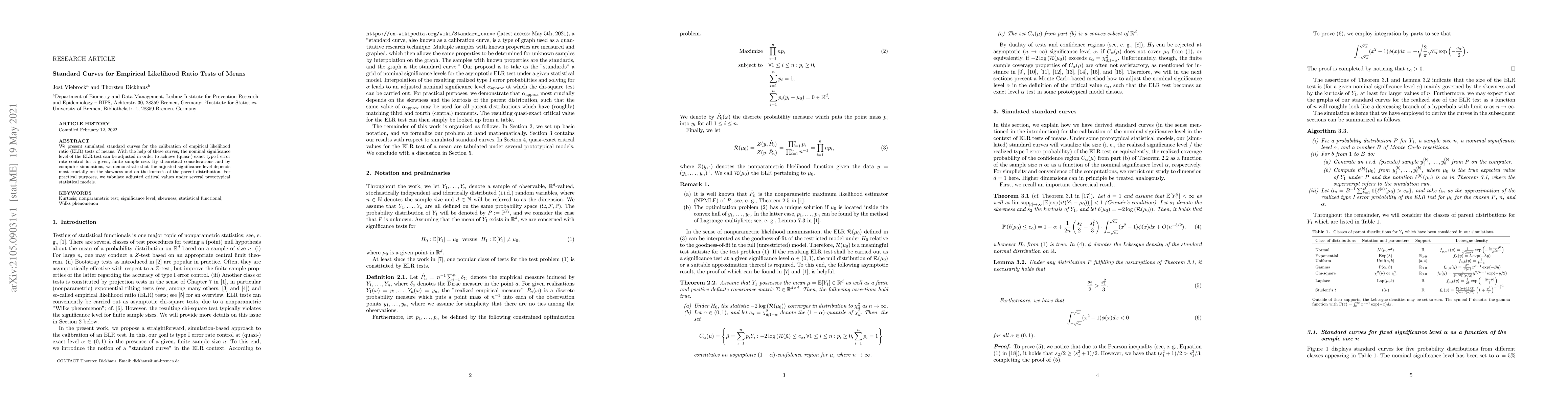 This paper provides simulated standard curves for calibrating empirical likelihood ratio tests of means, allowing for exact type I error rate control in finite samples. The adjusted significance level is shown to depend significantly on the skewness and kurtosis of the underlying distribution, with tabulated critical values for various statistical models.