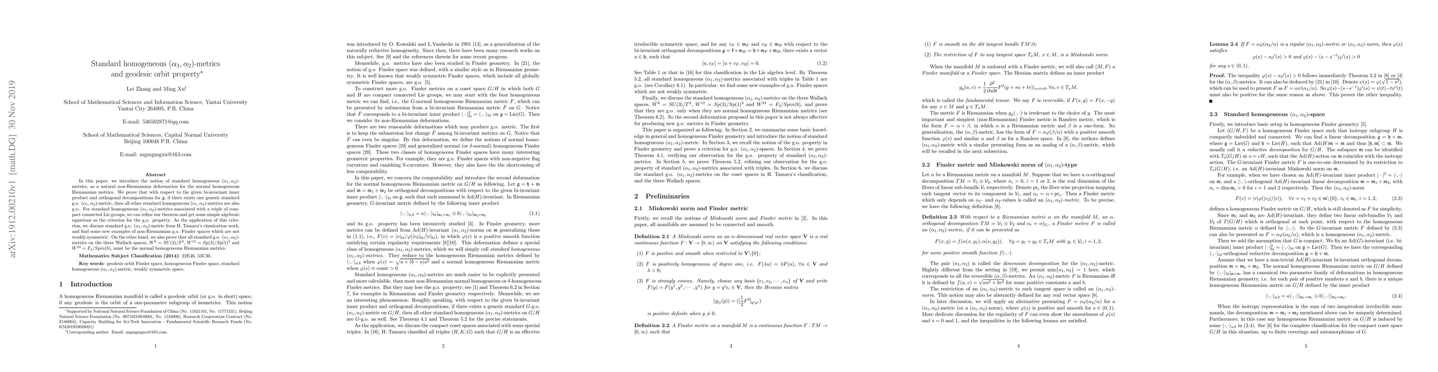 The paper introduces standard homogeneous $(eta_1,eta_2)$-metrics as a non-Riemannian deformation of normal homogeneous Riemannian metrics, proving that if one such metric exists, all others must be. The findings also imply that certain types of Finsler spaces are not weakly symmetric.