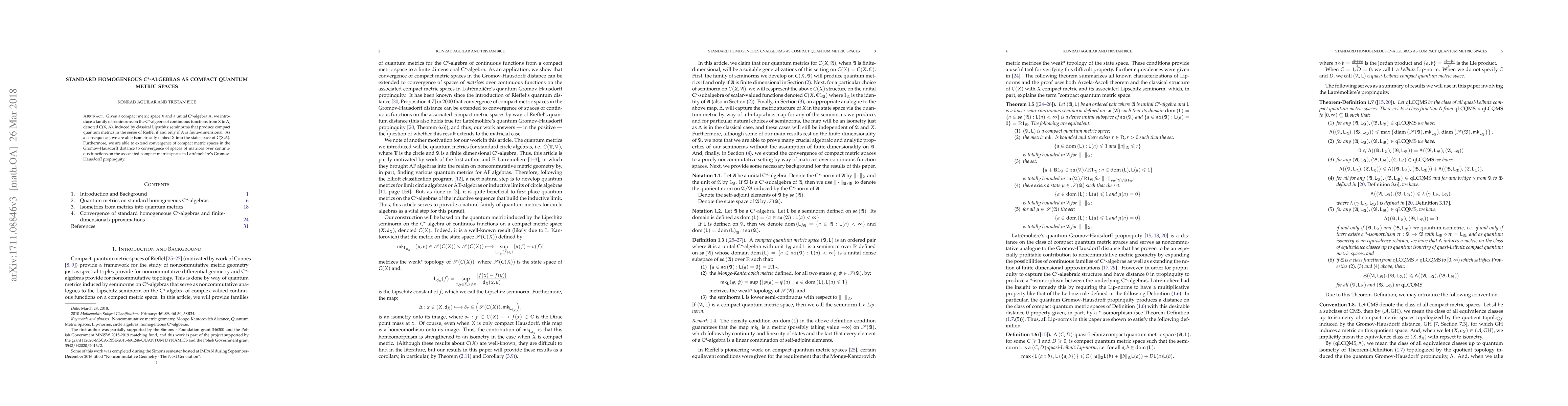 The novelty lies in the construction of quantum metrics for standard homogeneous C*-algebras and the extension of Gromov-Hausdorff convergence to a quantum setting, bridging classical metric geometry with quantum metric spaces.