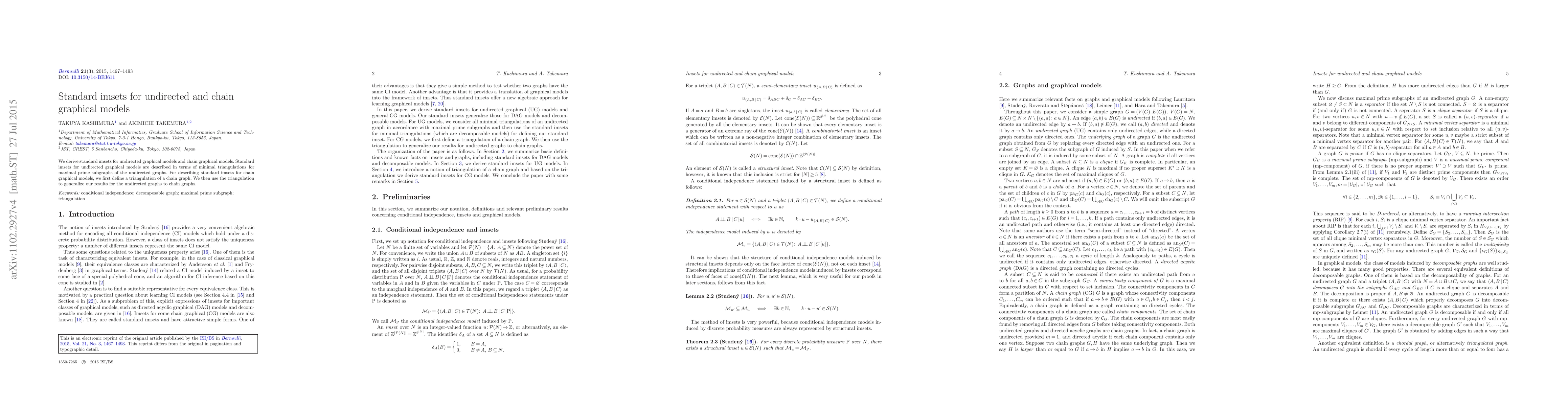 This paper derives standard imsets for undirected and chain graphical models, describing them in terms of minimal triangulations for undirected graphs and extending these results to chain graphs through a defined triangulation.