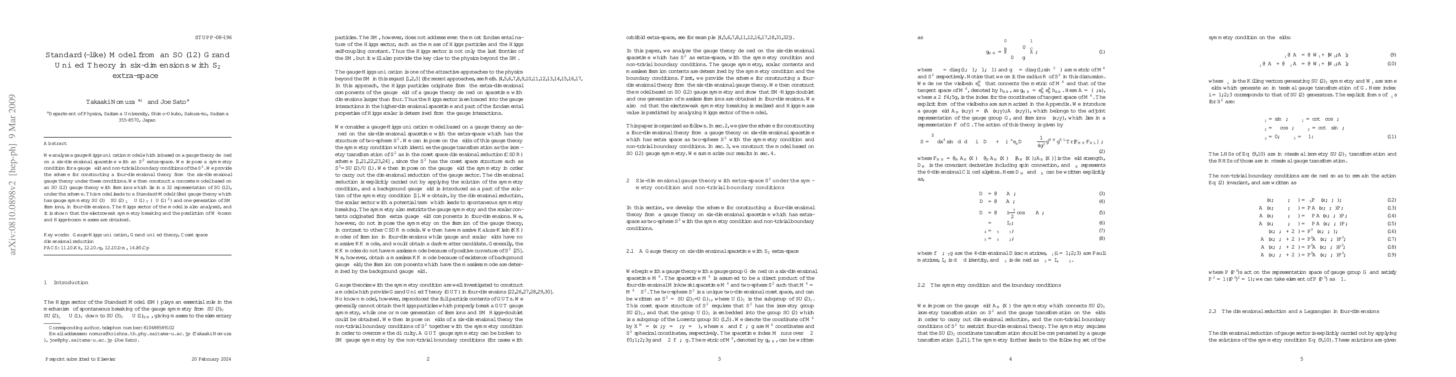 We analyze a gauge-Higgs unification model which is based on a gauge theory defined on a six-dimensional spacetime with an $S^2$ extra-space. We impose a symmetry condition for a gauge field and non-trivial boundary conditions of the $S^2$. We provide the scheme for constructing a four-dimensional theory from the six-dimensional gauge theory under these conditions. We then construct a concrete model based on an SO(12) gauge theory with fermions which lie in a 32 representation of SO(12), under the scheme. This model leads to a Standard-Model(-like) gauge theory which has gauge symmetry SU(3) $\times$ SU(2)$_L$ $\times$ U(1)$_Y$($\times$ U(1)$^2$) and one generation of SM fermions, in four-dimensions. The Higgs sector of the model is also analyzed, and it is shown that the electroweak symmetry breaking and the prediction of W-boson and Higgs-boson masses are obtained.