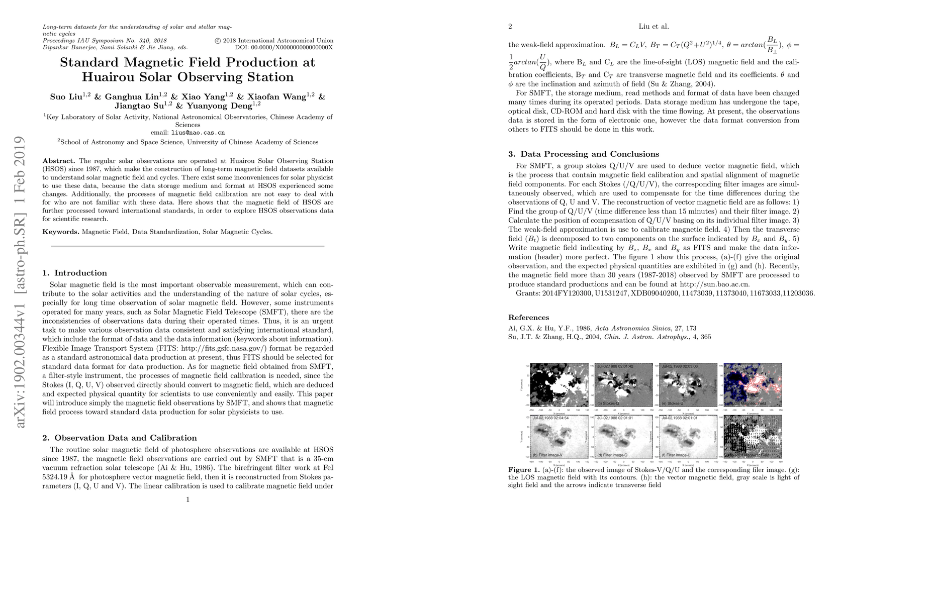 The regular solar observations are operated at Huairou Solar Observing Station (HSOS) since 1987, which make the construction of long-term magnetic field datasets available to understand solar magnetic field and cycles. There exist some inconveniences for solar physicist to use these data, because the data storage medium and format at HSOS experienced some changes. Additionally, the processes of magnetic field calibration are not easy to deal with for who are not familiar with these data. Here shows that the magnetic field of HSOS are further processed toward international standards, in order to explore HSOS observations data for scientific research.