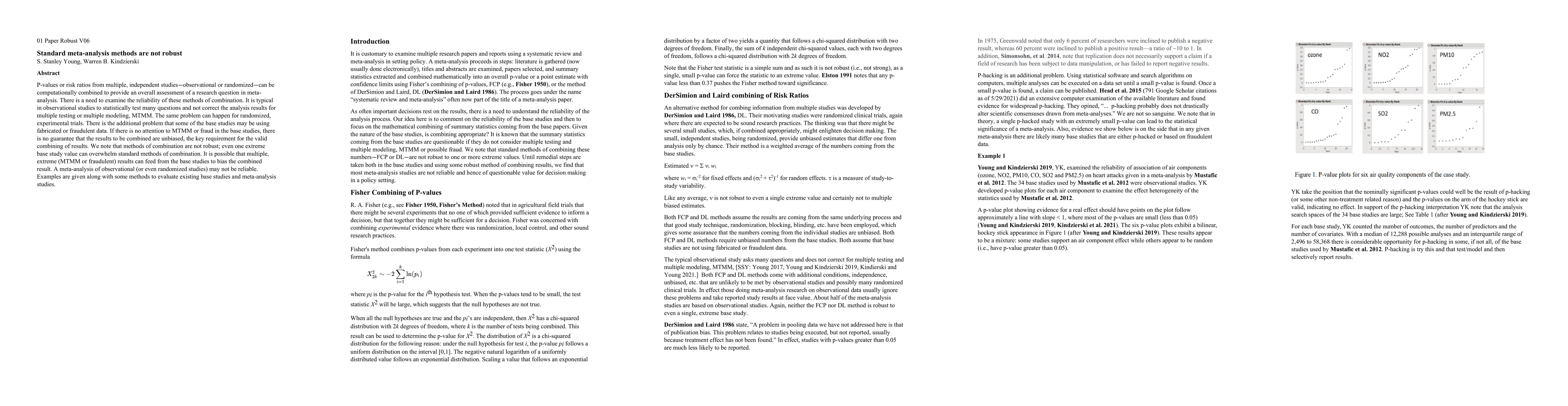 P values or risk ratios from multiple, independent studies, observational or randomized, can be computationally combined to provide an overall assessment of a research question in meta-analysis. There is a need to examine the reliability of these methods of combination. It is typical in observational studies to statistically test many questions and not correct the analysis results for multiple testing or multiple modeling, MTMM. The same problem can happen for randomized, experimental trials. There is the additional problem that some of the base studies may be using fabricated or fraudulent data. If there is no attention to MTMM or fraud in the base studies, there is no guarantee that the results to be combined are unbiased, the key requirement for the valid combining of results. We note that methods of combination are not robust; even one extreme base study value can overwhelm standard methods of combination. It is possible that multiple, extreme (MTMM or fraudulent) results can feed from the base studies to bias the combined result. A meta-analysis of observational (or even randomized studies) may not be reliable. Examples are given along with some methods to evaluate existing base studies and meta-analysis studies.