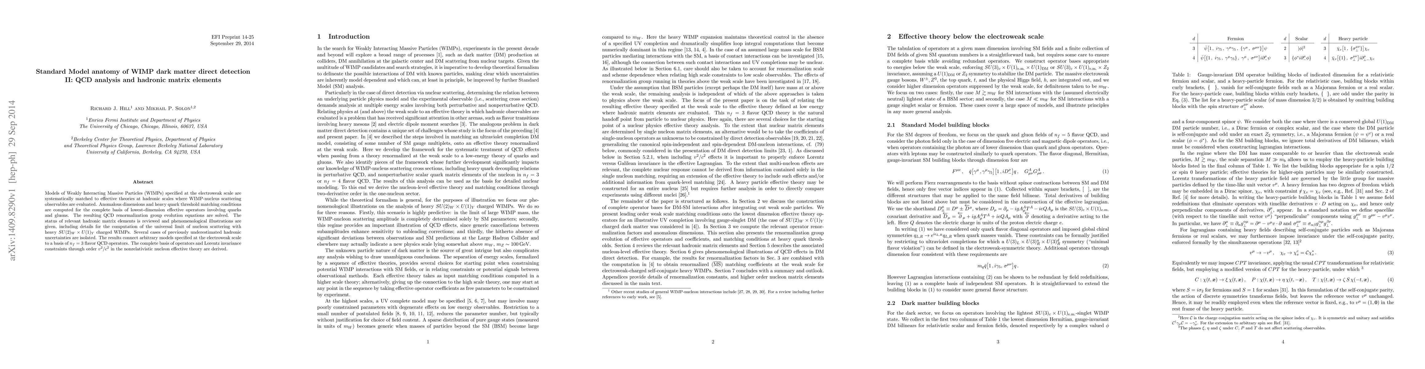 Models of Weakly Interacting Massive Particles (WIMPs) specified at the electroweak scale are systematically matched to effective theories at hadronic scales where WIMP-nucleus scattering observables are evaluated. Anomalous dimensions and heavy quark threshold matching conditions are computed for the complete basis of lowest-dimension effective operators involving quarks and gluons. The resulting QCD renormalization group evolution equations are solved. The status of relevant hadronic matrix elements is reviewed and phenomenological illustrations are given, including details for the computation of the universal limit of nucleon scattering with heavy $SU(2)_W\times U(1)_Y$ charged WIMPs. Several cases of previously underestimated hadronic uncertainties are isolated. The results connect arbitrary models specified at the electroweak scale to a basis of $n_f=3$ flavor QCD operators. The complete basis of operators and Lorentz invariance constraints through order $v^2/c^2$ in the nonrelativistic nucleon effective theory are derived.