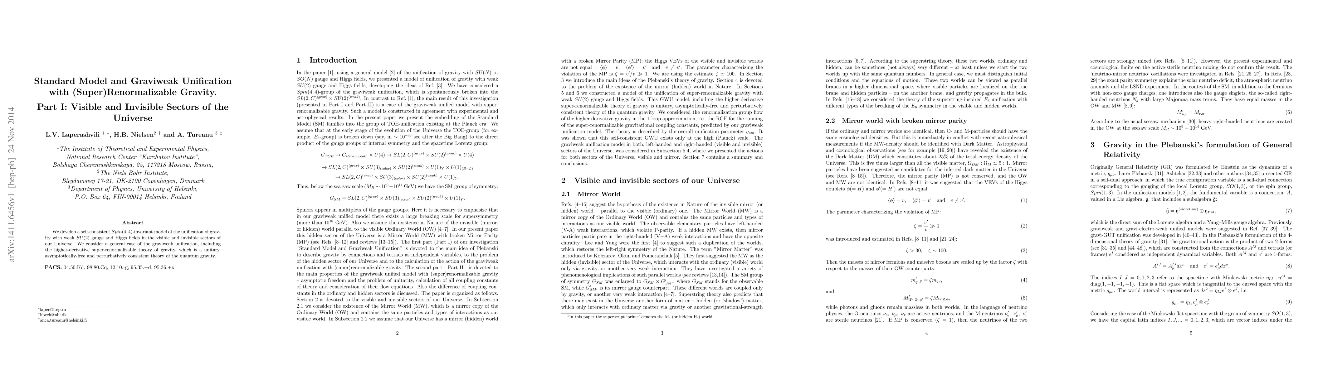 This research paper proposes a self-consistent model unifying gravity with weak gauge and Higgs fields in both visible and invisible sectors of the universe, using a higher-derivative super-renormalizable theory of quantum gravity.