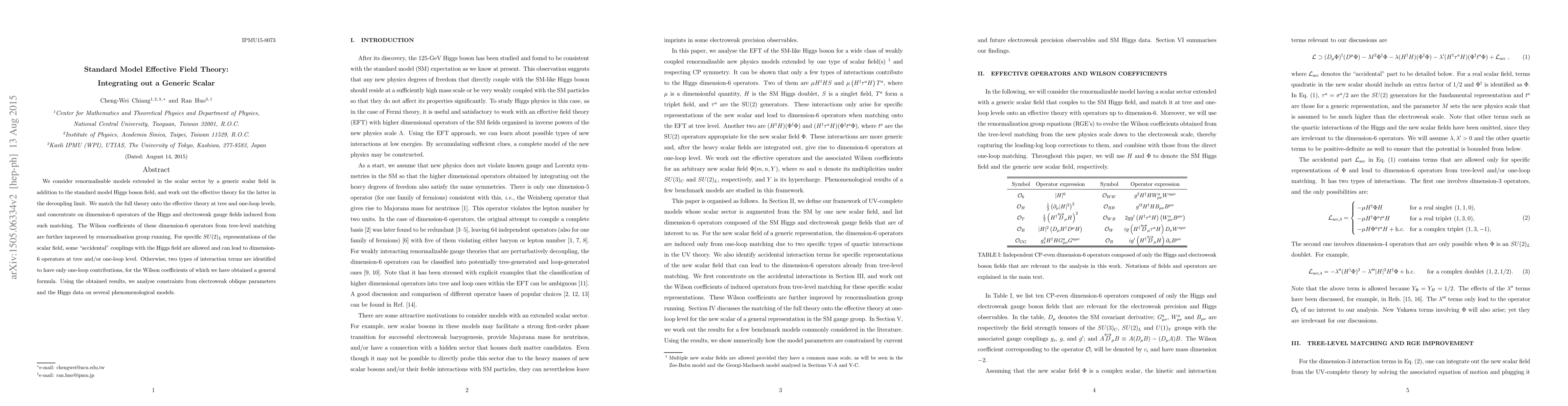 Researchers extended the Standard Model with a generic scalar field, creating an effective theory that includes dimension-6 operators from matching the full theory to the effective one. The work provides constraints on phenomenological models based on electroweak oblique parameters and Higgs data.