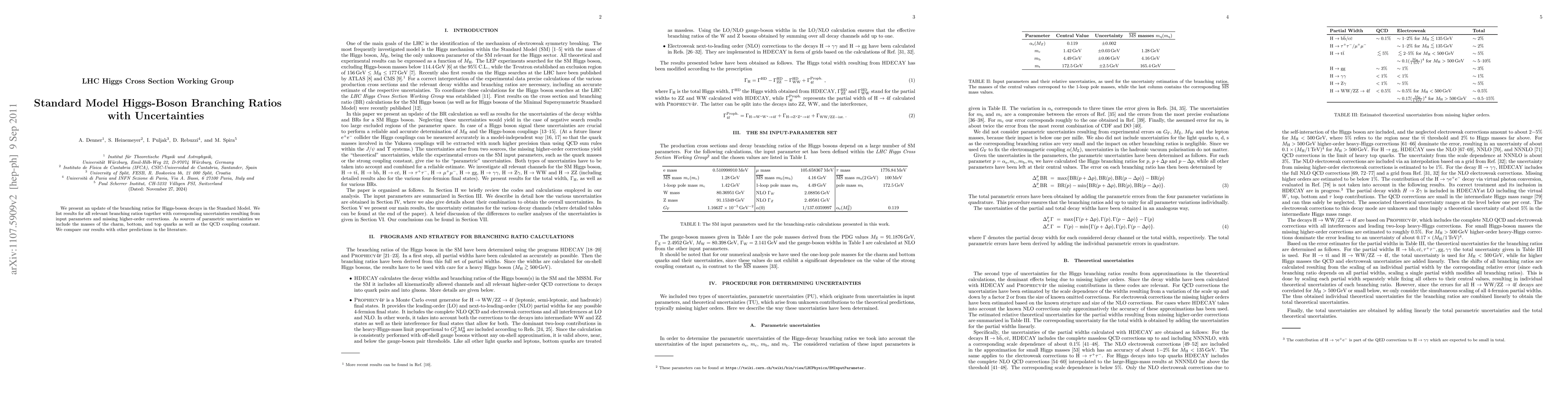 We present an update of the branching ratios for Higgs-boson decays in the Standard Model. We list results for all relevant branching ratios together with corresponding uncertainties resulting from input parameters and missing higher-order corrections. As sources of parametric uncertainties we include the masses of the charm, bottom, and top quarks as well as the QCD coupling constant. We compare our results with other predictions in the literature.