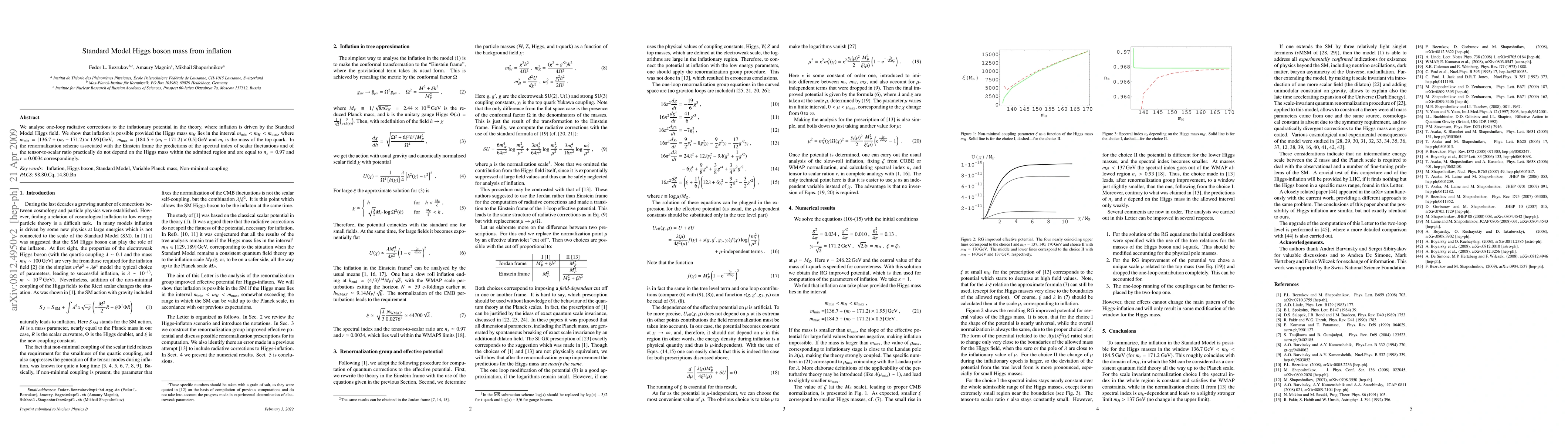 the theory, where inflation is driven by the Standard Model Higgs field. We