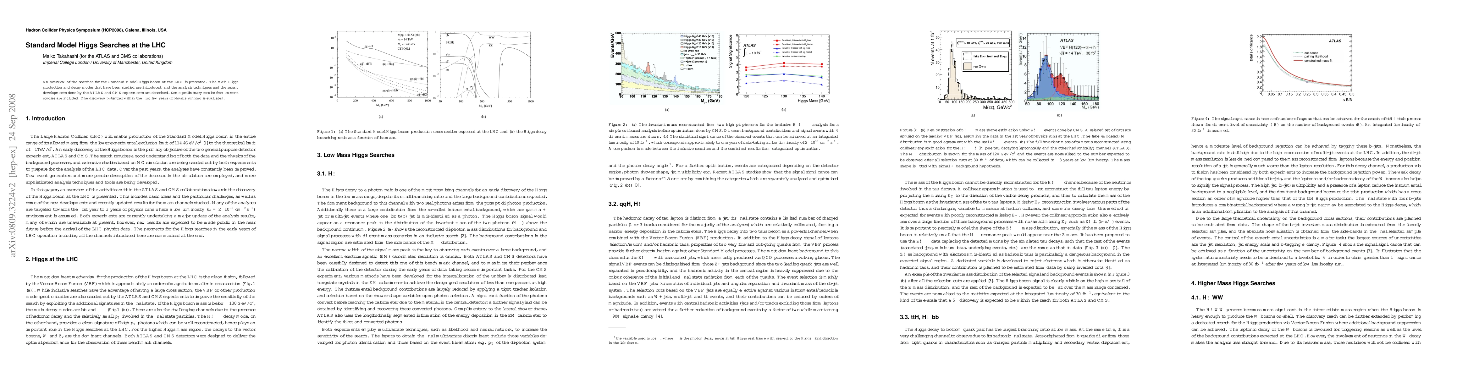 This paper provides an overview of the searches for the Standard Model Higgs boson at the LHC, detailing the main production and decay modes studied by the ATLAS and CMS experiments, along with their analysis techniques and preliminary results. The evaluation includes the discovery potential within the initial years of LHC operation.