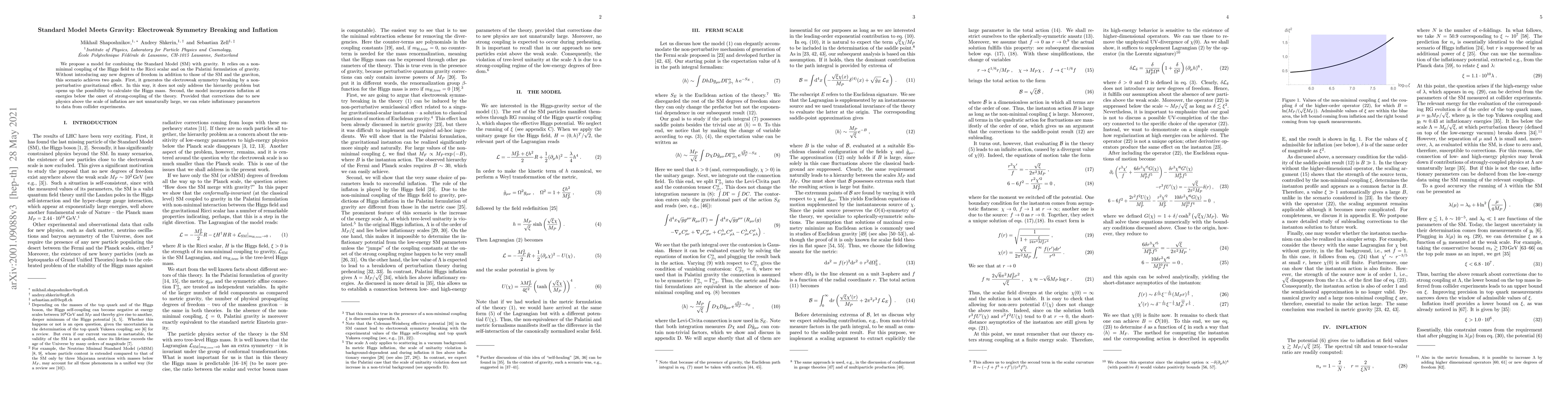 This paper proposes a model integrating the Standard Model with gravity through a non-minimal Higgs-Ricci coupling and the Palatini formulation, achieving electroweak symmetry breaking via gravitational effects and incorporating inflation without introducing new degrees of freedom. It also connects inflationary parameters to collider data.