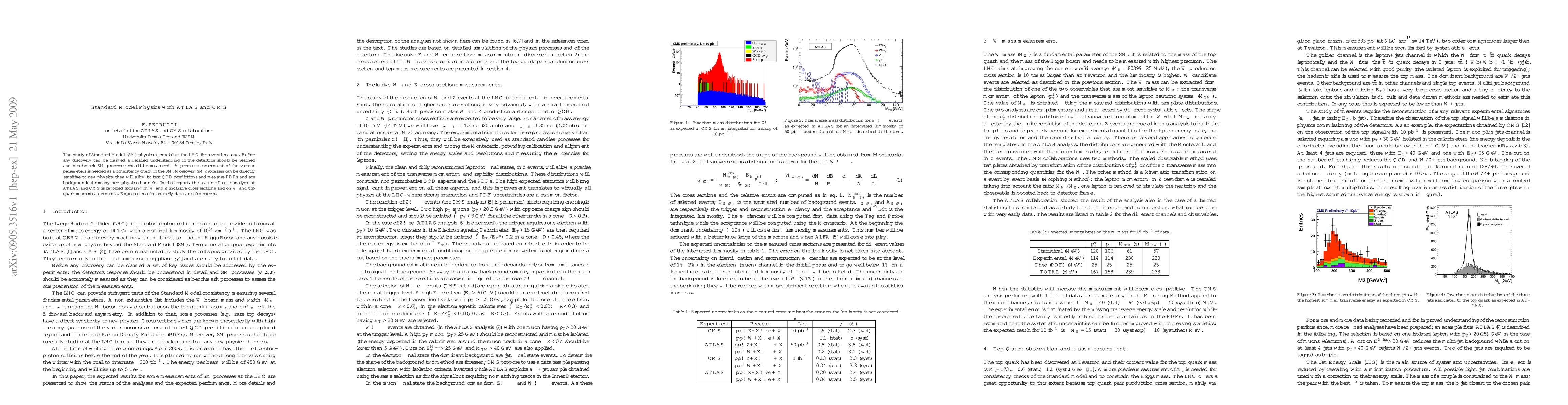 This paper reviews the status of Standard Model physics analyses at the LHC's ATLAS and CMS detectors, focusing on precise measurements of W and Z inclusive cross sections and the masses of W and top quarks, serving as crucial benchmarks and backgrounds for new physics searches. Expected results from early data are also presented.