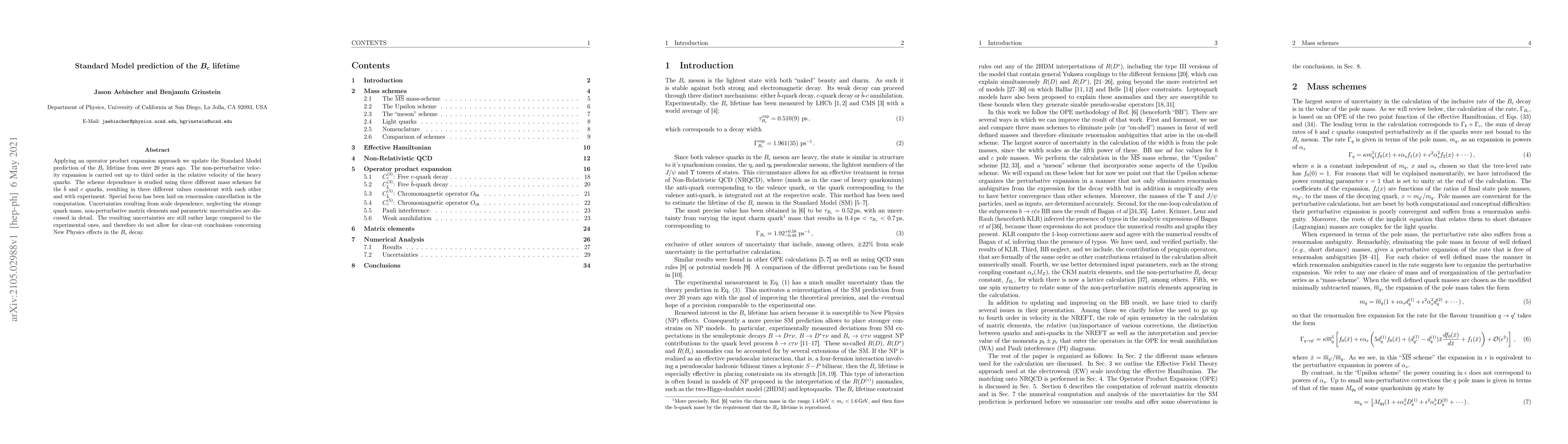 Researchers update the Standard Model prediction of $B_c$ lifetime using an operator product expansion approach, achieving consistent results across three mass schemes that align with experimental values.