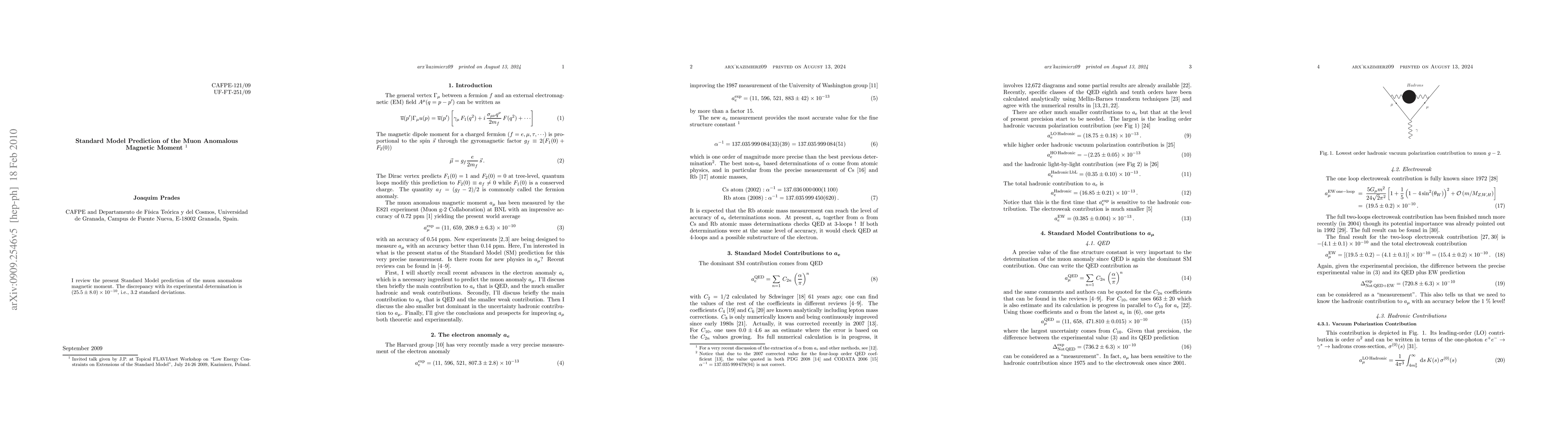 The paper reviews the Standard Model prediction of the muon anomalous magnetic moment (aµ) by calculating various contributions, including QED, electroweak, and hadronic contributions. It uses precise e+e− data from different experiments to calculate σ(0) and incorporates the latest evaluation of the hadronic light-by-light contribution.