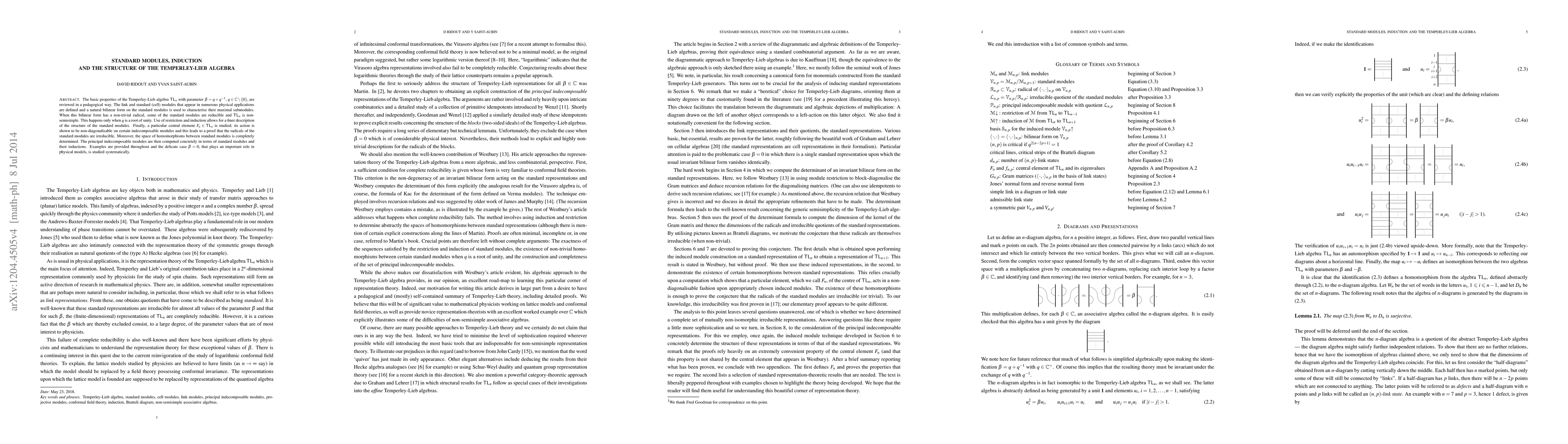 This paper reviews the Temperley-Lieb algebra $TL_n$ with $\beta = q + q^{-1}$, exploring its standard modules, maximal submodules, and their structure through induction. It highlights non-semisimplicity when $q$ is a root of unity, determines the homomorphism space between standard modules, and computes principal indecomposable modules using induction, with special attention to the case $\beta = 0$.