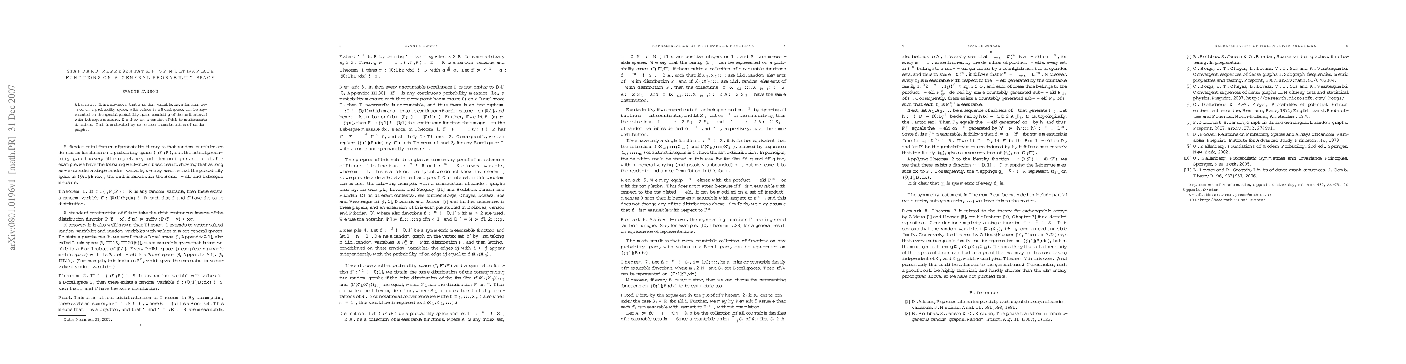 It is well-known that a random variable, i.e., a function defined on a probability space, with values in a Borel space, can be represented on the special probability space consisting of the unit interval with Lebesgue measure. We show an extension of this to multivariate functions. This is motivated by some recent constructions of random graphs.