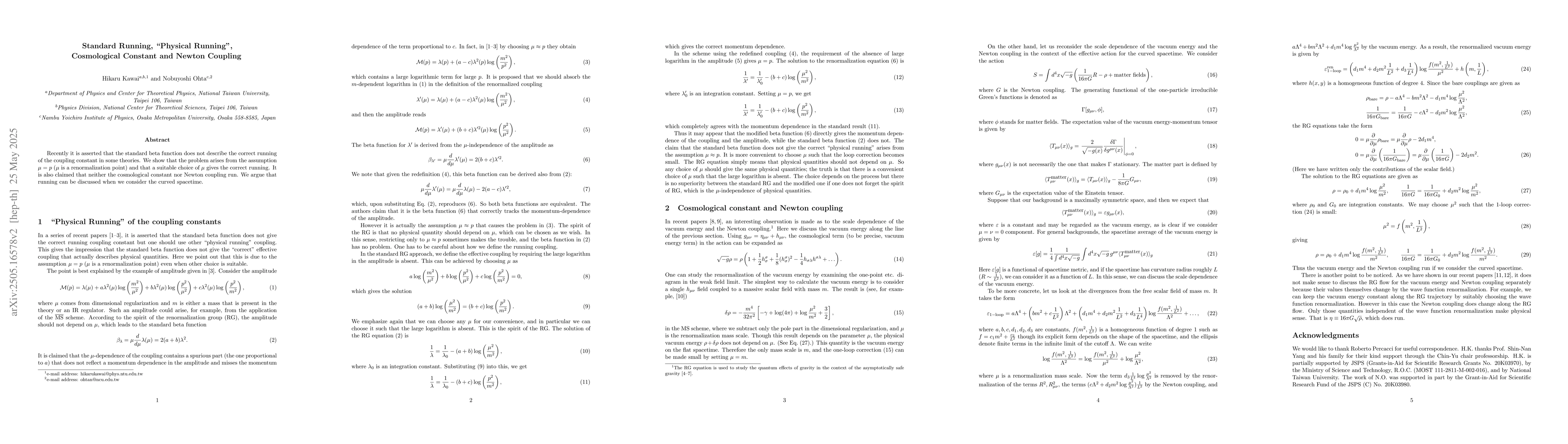 Recently it is asserted that the standard beta function does not describe the correct running of the coupling constant in some theories. We show that the problem arises from the assumption $\mu=p$ ($\mu$ is a renormalization point) and that a suitable choice of $\mu$ gives the correct running. It is also claimed that neither the cosmological constant nor Newton coupling run. We argue that running can be discussed when we consider the curved spacetime.