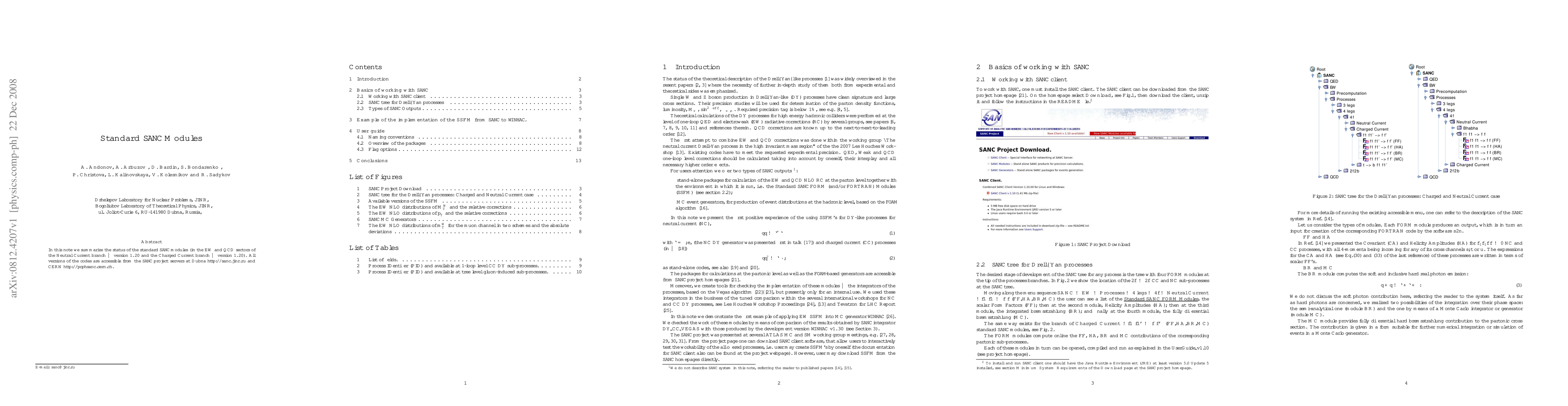 The SANC project has summarized the status of its standard modules for EW and QCD sectors in Neutral Current branch (version 1.20) and Charged Current branch (version 1.20), making codes accessible from Dubna and CERN servers.