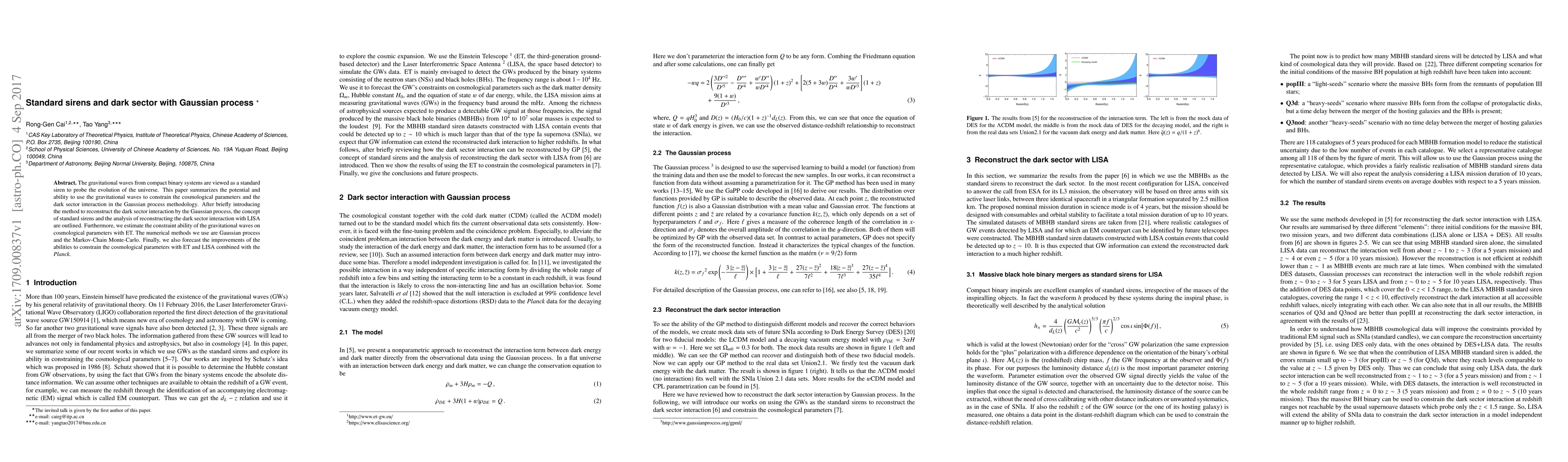 The gravitational waves from compact binary systems are viewed as a standard siren to probe the evolution of the universe. This paper summarizes the potential and ability to use the gravitational waves to constrain the cosmological parameters and the dark sector interaction in the Gaussian process methodology. After briefly introducing the method to reconstruct the dark sector interaction by the Gaussian process, the concept of standard sirens and the analysis of reconstructing the dark sector interaction with LISA are outlined. Furthermore, we estimate the constraint ability of the gravitational waves on cosmological parameters with ET. The numerical methods we use are Gaussian process and the Markov-Chain Monte-Carlo. Finally, we also forecast the improvements of the abilities to constrain the cosmological parameters with ET and LISA combined with the \it Planck.