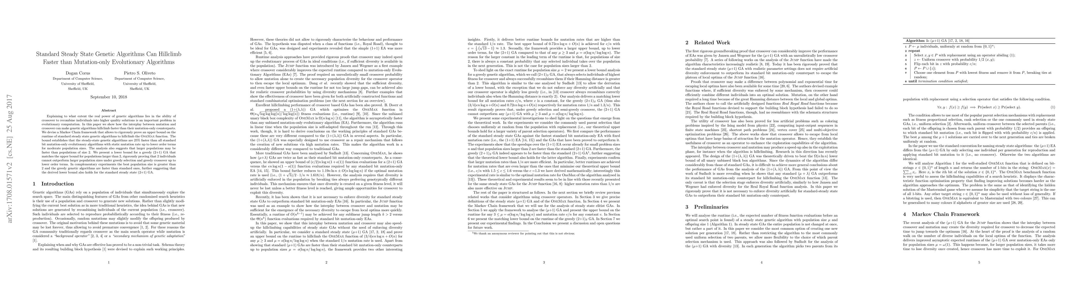 This paper demonstrates that standard steady-state genetic algorithms utilizing crossover can hillclimb faster than mutation-only evolutionary algorithms, establishing a rigorous upper bound on their runtime. Experiments show that larger population sizes outperform populations of size 2, and the derived lower bound supports the efficiency of greedy genetic algorithms.