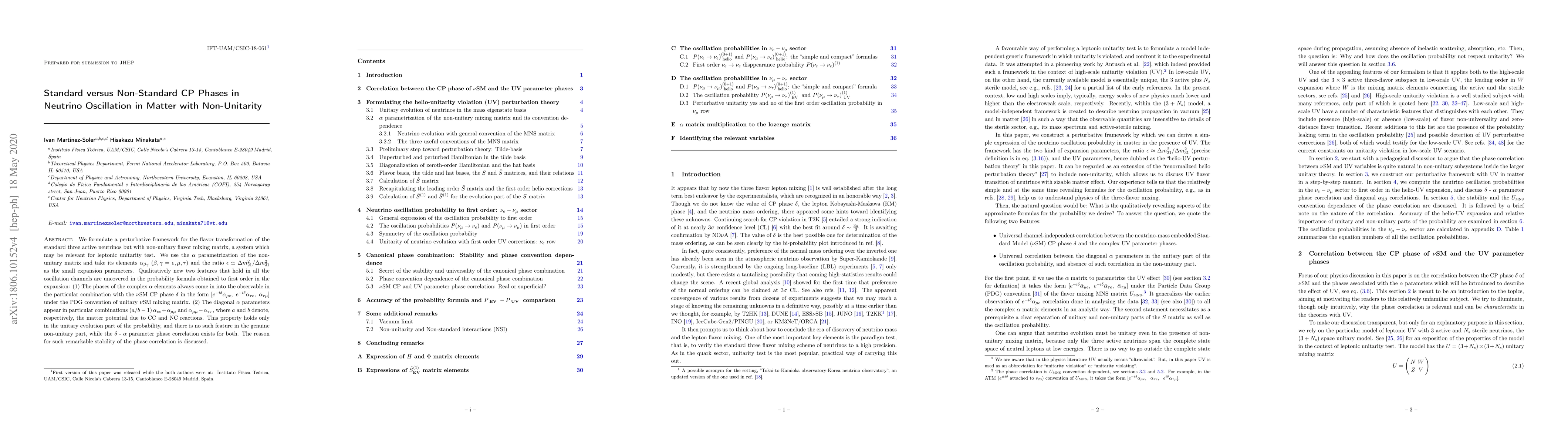 We formulate a perturbative framework for the flavor transformation of the standard three active neutrinos but with non-unitary flavor mixing matrix, a system which may be relevant for leptonic unitarity test. We use the $\alpha$ parametrization of the non-unitary matrix and take its elements $\alpha_{\beta \gamma}$ ($\beta,\gamma = e,\mu,\tau$) and the ratio $\epsilon \simeq \Delta m^2_{21} / \Delta m^2_{31}$ as the small expansion parameters. Qualitatively new two features that hold in all the oscillation channels are uncovered in the probability formula obtained to first order in the expansion: (1) The phases of the complex $\alpha$ elements always come in into the observable in the particular combination with the $\nu$SM CP phase $\delta$ in the form $[e^{- i \delta } \bar{\alpha}_{\mu e}, ~e^{ - i \delta} \bar{\alpha}_{\tau e}, ~\bar{\alpha}_{\tau \mu}]$ under the PDG convention of unitary $\nu$SM mixing matrix. (2) The diagonal $\alpha$ parameters appear in particular combinations $\left( a/b - 1 \right) \alpha_{ee} + \alpha_{\mu \mu}$ and $\alpha_{\mu \mu} - \alpha_{\tau \tau}$, where $a$ and $b$ denote, respectively, the matter potential due to CC and NC reactions. This property holds only in the unitary evolution part of the probability, and there is no such feature in the genuine non-unitary part, while the $\delta$ - $\alpha$ parameter phase correlation exists for both. The reason for such remarkable stability of the phase correlation is discussed.