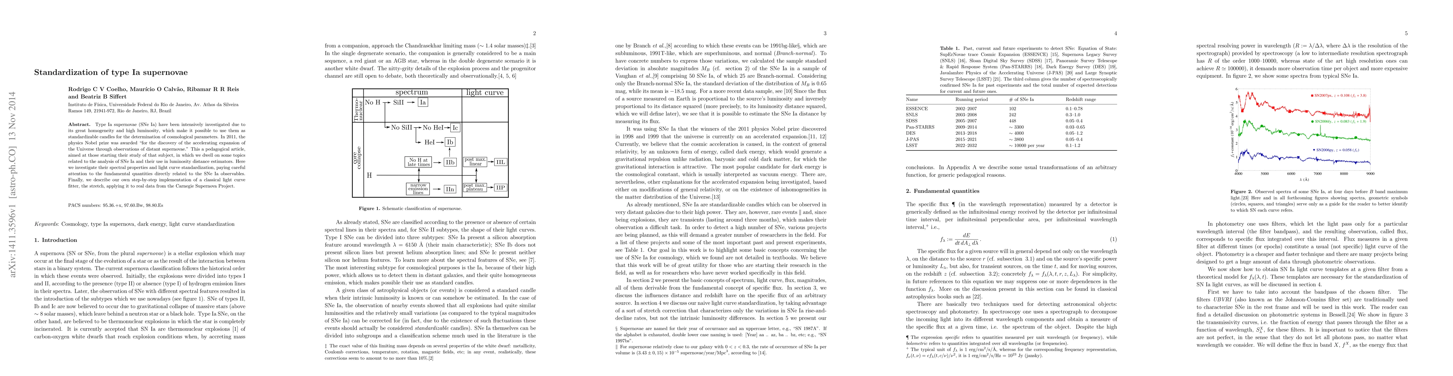 This paper explores the standardization of Type Ia supernovae (SNe Ia) for cosmological parameter determination, focusing on spectral properties and light curve standardization. It details the implementation of a classical light curve fitter, the stretch, and applies it to data from the Carnegie Supernova Project.