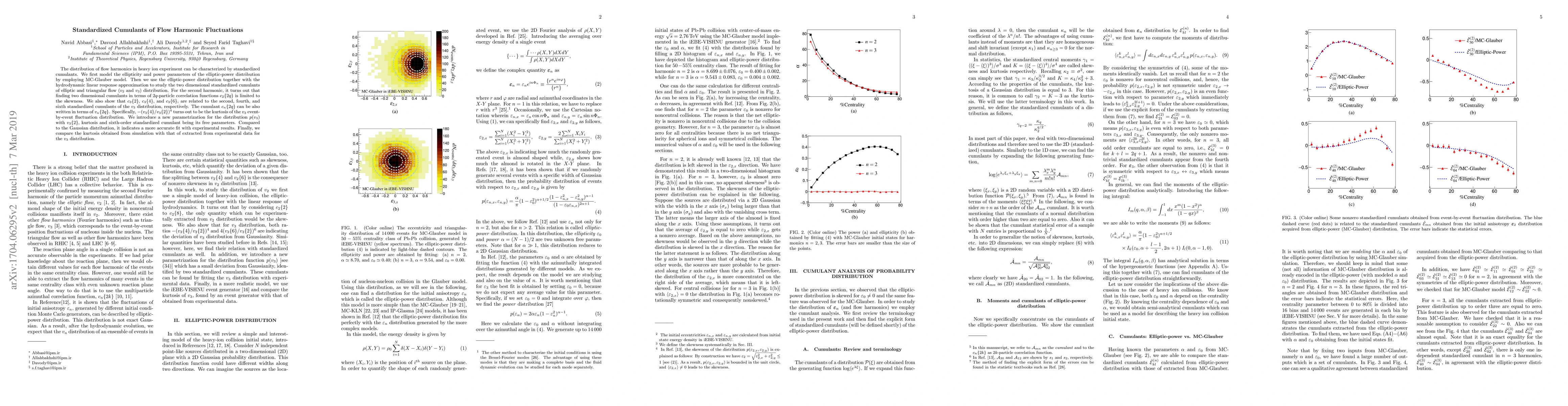 The distribution of flow harmonics in heavy ion experiment can be characterized by standardized cumulants. We first model the ellipticity and power parameters of the elliptic-power distribution by employing MC-Glauber model. Then we use the elliptic-power distribution together with the hydrodynamic linear response approximation to study the two dimensional standardized cumulants of elliptic and triangular flow ($v_2$ and $v_3$) distribution. For the second harmonic, it turns out that finding two dimensional cumulants in terms of $2q$-particle correlation functions $c_2\{2q\}$ is limited to the skewness. We also show that $c_3\{2\}$, $c_3\{4\}$, and $c_3\{6\}$, are related to the second, fourth, and sixth standardized cumulants of the $v_3$ distribution, respectively. The cumulant $c_{n}\{2q\}$ can be also written in terms of $v_n\{2q\}$. Specifically, $-(v_3\{4\}/v_3\{2\})^4$ turns out to be the kurtosis of the $v_3$ event-by-event fluctuation distribution. We introduce a new parametrization for the distribution $p(v_3)$ with $v_3\{2\}$, kurtosis and sixth-order standardized cumulant being its free parameters. Compared to the Gaussian distribution, it indicates a more accurate fit with experimental results. Finally, we compare the kurtosis obtained from simulation with that of extracted from experimental data for the $v_3$ distribution.