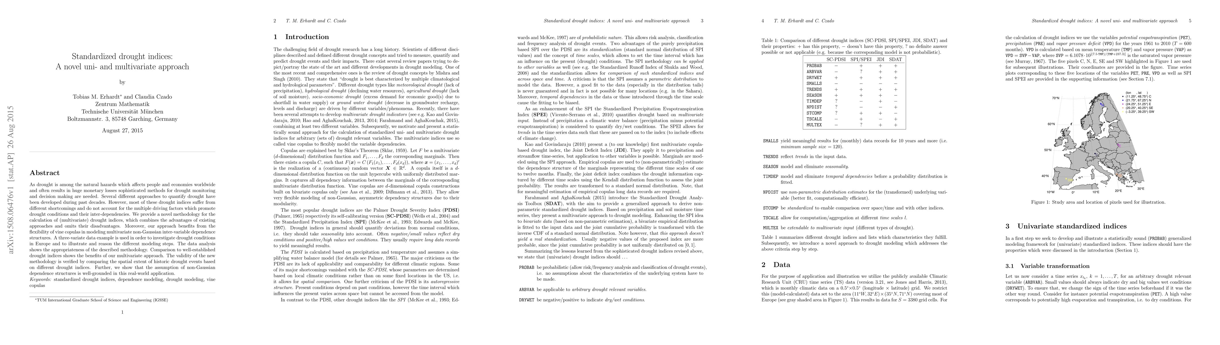 As drought is among the natural hazards which affects people and economies worldwide and often results in huge monetary losses sophisticated methods for drought monitoring and decision making are needed. Several different approaches to quantify drought have been developed during past decades. However, most of these drought indices suffer from different shortcomings and do not account for the multiple driving factors which promote drought conditions and their inter-dependencies. We provide a novel methodology for the calculation of (multivariate) drought indices, which combines the advantages of existing approaches and omits their disadvantages. Moreover, our approach benefits from the flexibility of vine copulas in modeling multivariate non-Gaussian inter-variable dependence structures. A three-variate data example is used in order to investigate drought conditions in Europe and to illustrate and reason the different modeling steps. The data analysis shows the appropriateness of the described methodology. Comparison to well-established drought indices shows the benefits of our multivariate approach. The validity of the new methodology is verified by comparing the spatial extent of historic drought events based on different drought indices. Further, we show that the assumption of non-Gaussian dependence structures is well-grounded in this real-world application.