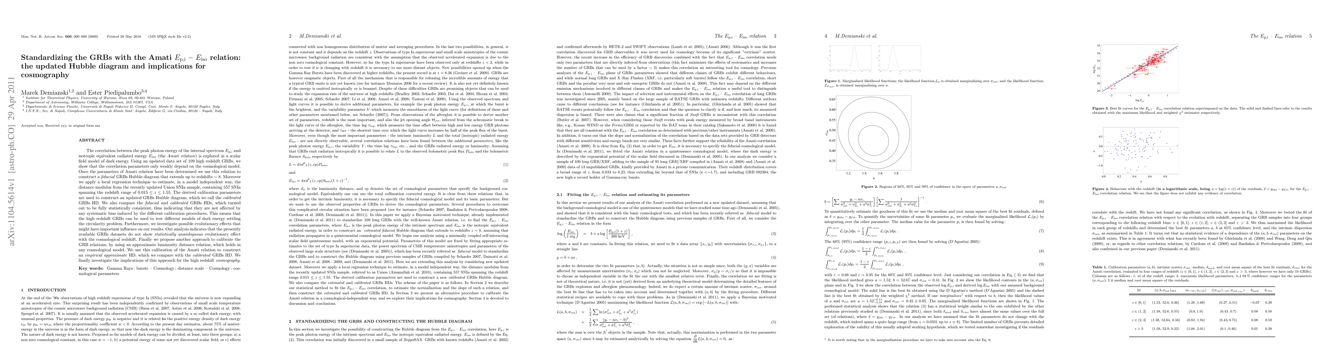 A study uses 109 high-redshift GRBs to create an updated Hubble diagram, finding that it extends up to redshift z ~ 8 and is consistent with other data sets, allowing for testing of dark energy models.