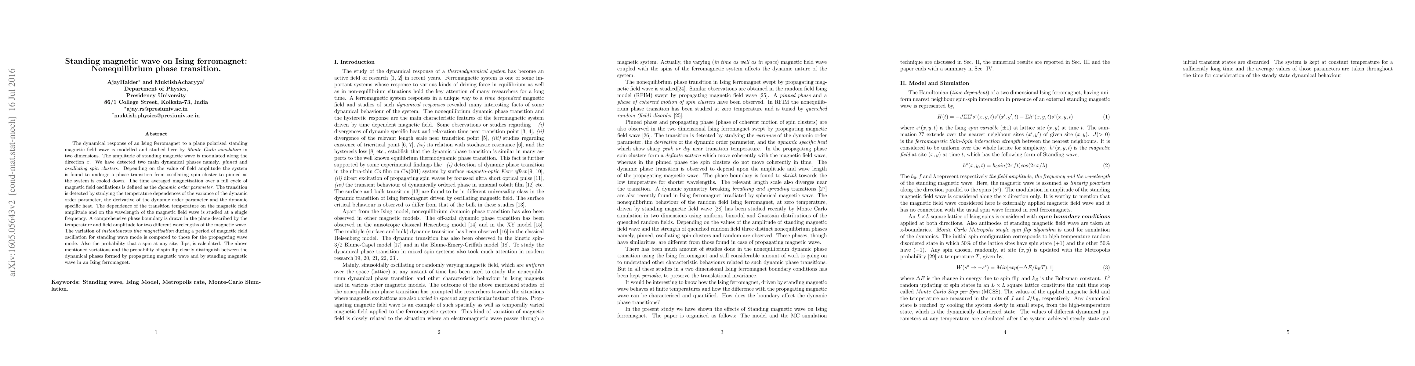 This study uses Monte Carlo simulations to model the response of a 2D Ising ferromagnet to a standing magnetic wave, identifying two dynamical phases: pinned and oscillating spin clusters. The system transitions from oscillating to pinned as it cools, with the transition temperature dependent on the magnetic field amplitude and wavelength.