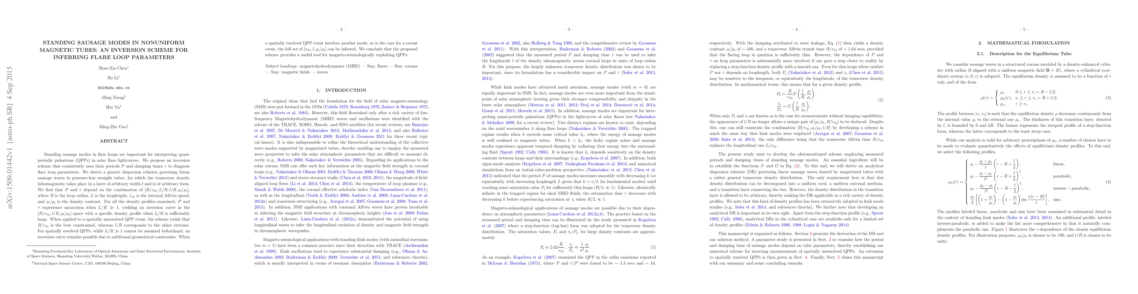 Standing sausage modes in flare loops are important for interpreting quasi-periodic pulsations (QPPs) in solar flare lightcurves. We propose an inversion scheme that consistently uses their periods $P$ and damping times $\tau$ to diagnose flare loop parameters. We derive a generic dispersion relation governing linear sausage waves in pressure-less straight tubes, for which the transverse density inhomogeneity takes place in a layer of arbitrary width $l$ and is of arbitrary form. We find that $P$ and $\tau$ depend on the combination of $[R/v_{\rm Ai}, L/R, l/R, \rho_{\rm i}/\rho_{\rm e}]$, where $R$ is the loop radius, $L$ is the looplength, $v_{\rm Ai}$ is the internal Alfv\'en speed, and $\rho_{\rm i}/\rho_{\rm e}$ is the density contrast. For all the density profiles examined, $P$ and $\tau$ experience saturation when $L/R \gg 1$, yielding an inversion curve in the $[R/v_{\rm Ai}, l/R, \rho_{\rm i}/\rho_{\rm e}]$ space with a specific density profile when $L/R$ is sufficiently large. When applied to a spatially unresolved QPP event, the scheme yields that $R/v_{\rm Ai}$ is the best constrained, whereas $l/R$ corresponds to the other extreme. For spatially resolved QPPs, while $L/R \gg 1$ cannot be assumed beforehand, an inversion curve remains possible due to additional geometrical constraints. When a spatially resolved QPP event involves another mode, as is the case for a recent event, the full set of $[v_{\rm Ai}, l, \rho_{\rm i}/\rho_{\rm e}]$ can be inferred. We conclude that the proposed scheme provides a useful tool for magneto-seismologically exploiting QPPs.