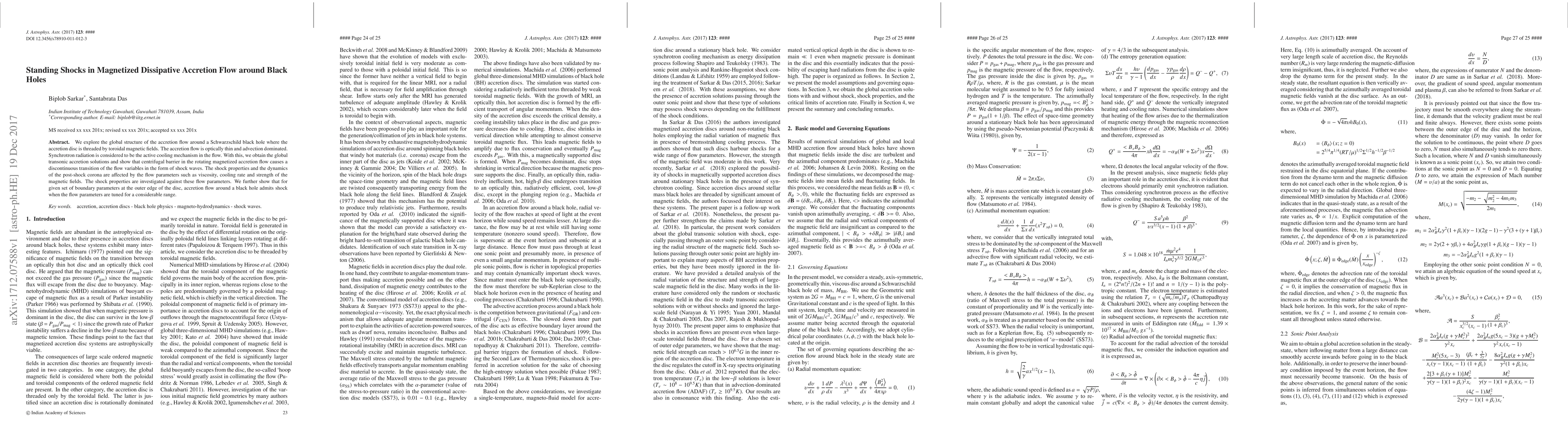 This paper investigates the global structure of magnetized, optically thin, and advection-dominated accretion flows around a Schwarzschild black hole, revealing the formation of standing shocks due to centrifugal barriers and examining how shock properties vary with flow parameters like viscosity, cooling rate, and magnetic field strength.