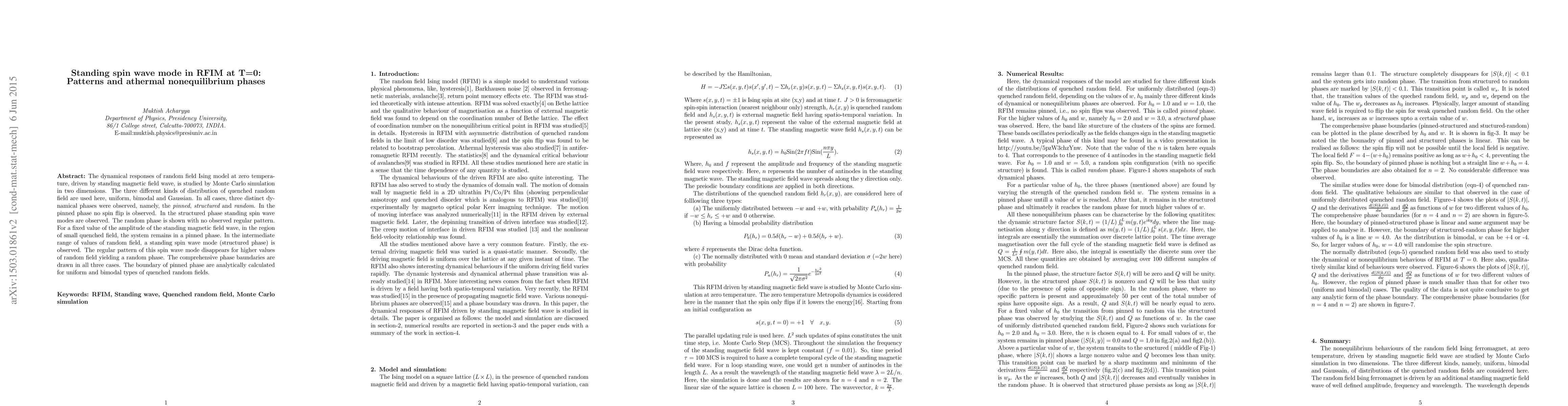 Researchers studied how a random field affects the behavior of a magnetic material at zero temperature when exposed to a standing magnetic field wave. They found three distinct dynamical phases, including a pinned phase where no spin flip occurs, a structured phase with standing spin wave modes, and a random phase without regular patterns.