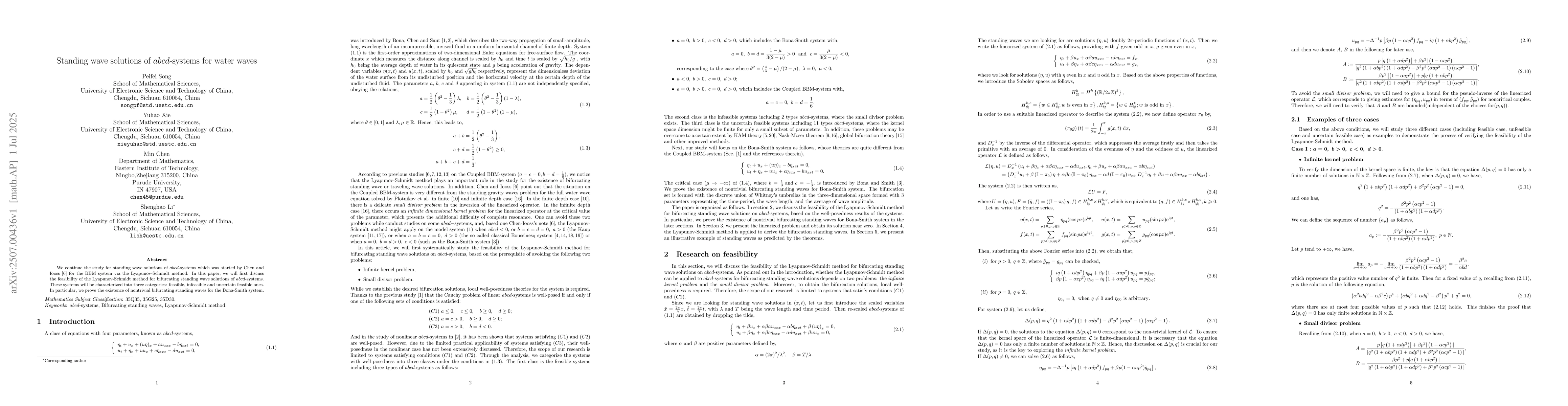 The research employs the Lyapunov-Schmidt method to analyze standing wave solutions of $abcd$-systems, specifically focusing on the Bona-Smith system for water waves. It categorizes these systems into feasible, infeasible, and uncertain feasible types.