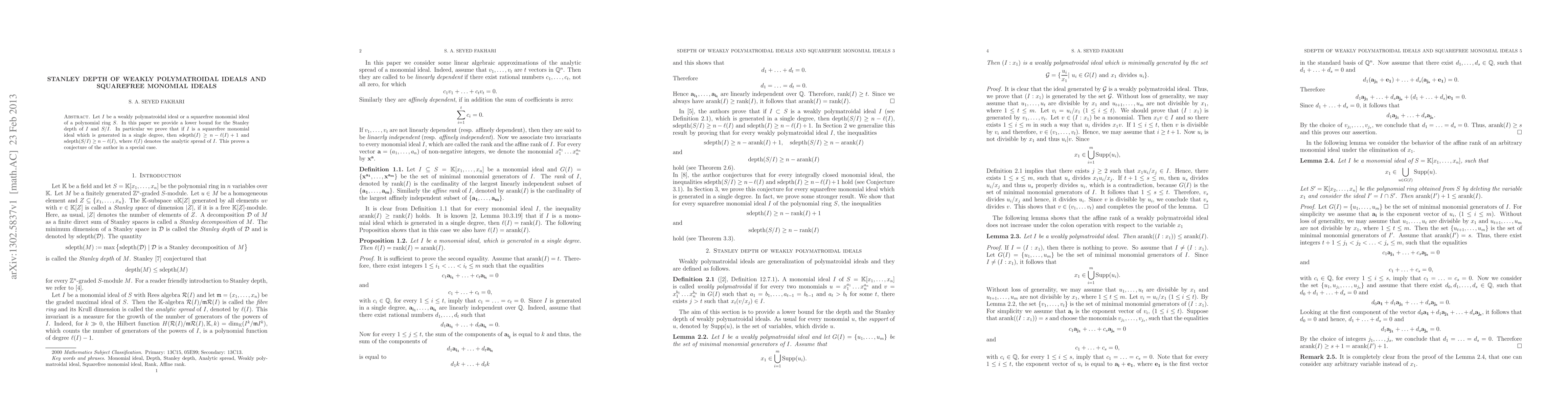 Let $I$ be a weakly polymatroidal ideal or a squarefree monomial ideal of a polynomial ring $S$. In this paper we provide a lower bound for the Stanley depth of $I$ and $S/I$. In particular we prove that if $I$ is a squarefree monomial ideal which is generated in a single degree, then ${\rm sdepth}(I)\geq n-\ell(I)+1$ and ${\rm sdepth}(S/I)\geq n-\ell(I)$, where $\ell(I)$ denotes the analytic spread of $I$. This proves a conjecture of the author in a special case.