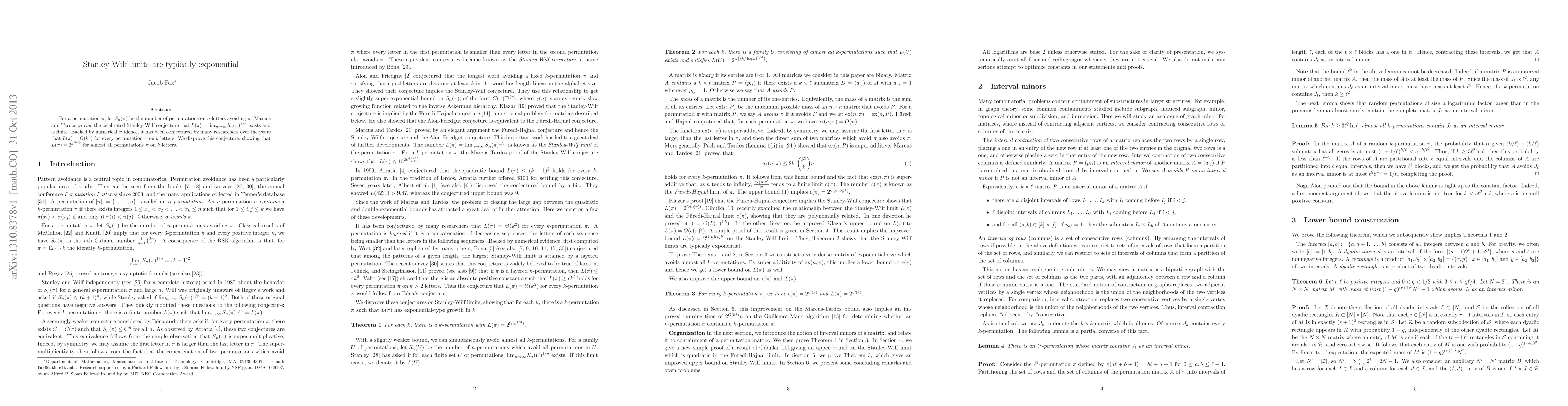 The paper disproves the conjecture that the Stanley-Wilf limit for permutations exists in the form $L(\pi)=\Theta(k^2)$, showing instead that $L(\pi)=2^{k^{\Theta(1)}}$ for most permutations $\pi$ on $k$ letters.