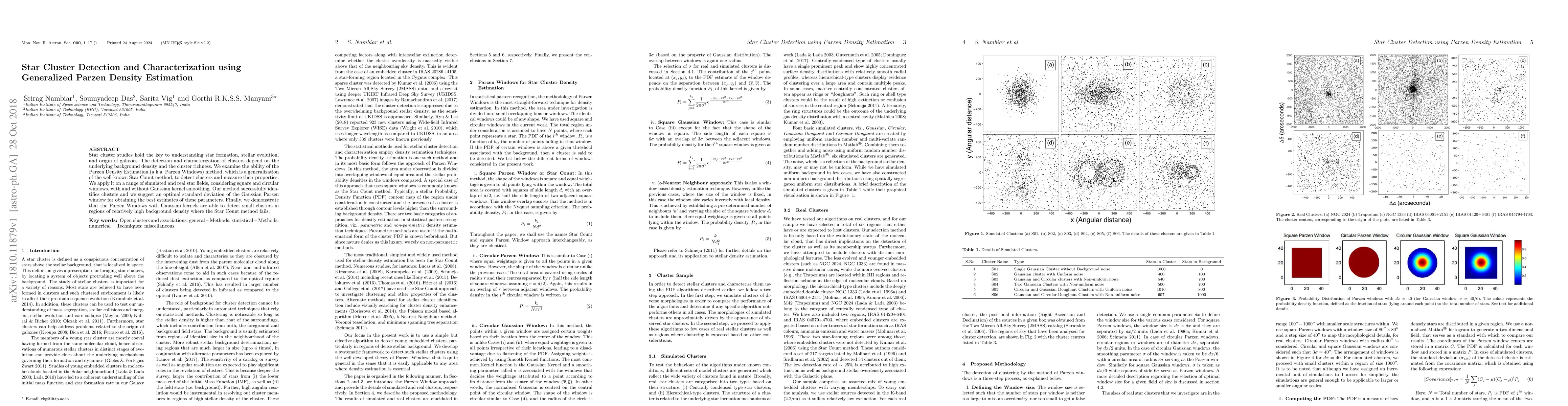This paper explores the use of Generalized Parzen Density Estimation to detect and characterize star clusters, demonstrating its effectiveness over traditional Star Count methods, especially in high background density regions. The study finds optimal parameters for Gaussian kernel smoothing to enhance cluster detection and characterization.