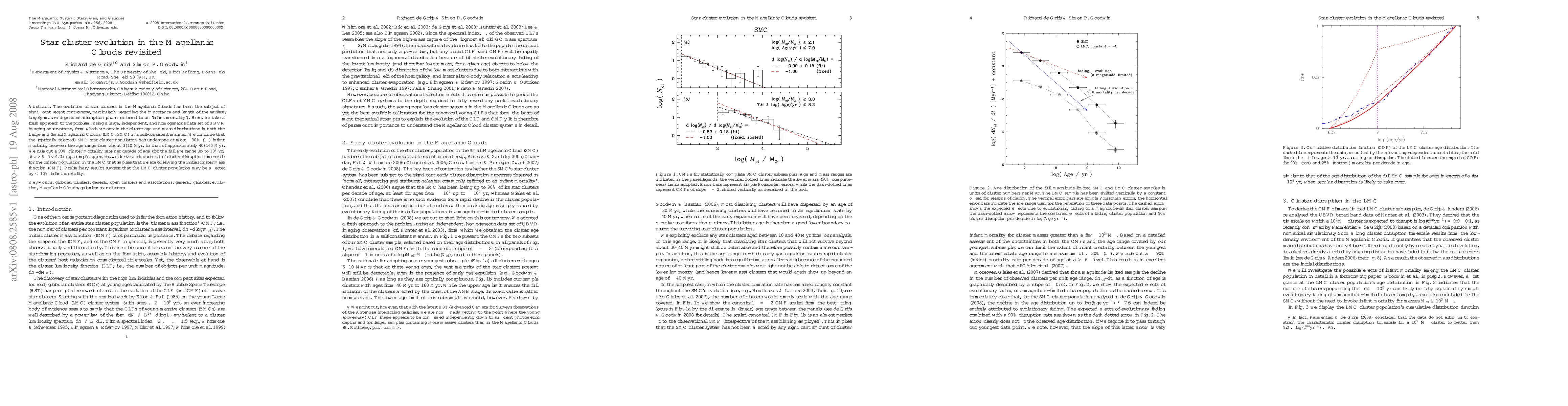 This study revisits the evolution of star clusters in the Magellanic Clouds, finding that the SMC clusters experienced at most ~30% infant mortality between ages 3-10 Myr to 40-160 Myr, while ruling out a 90% mortality rate per decade. The LMC clusters show preliminary evidence of <10% infant mortality, suggesting an initial cluster mass function.