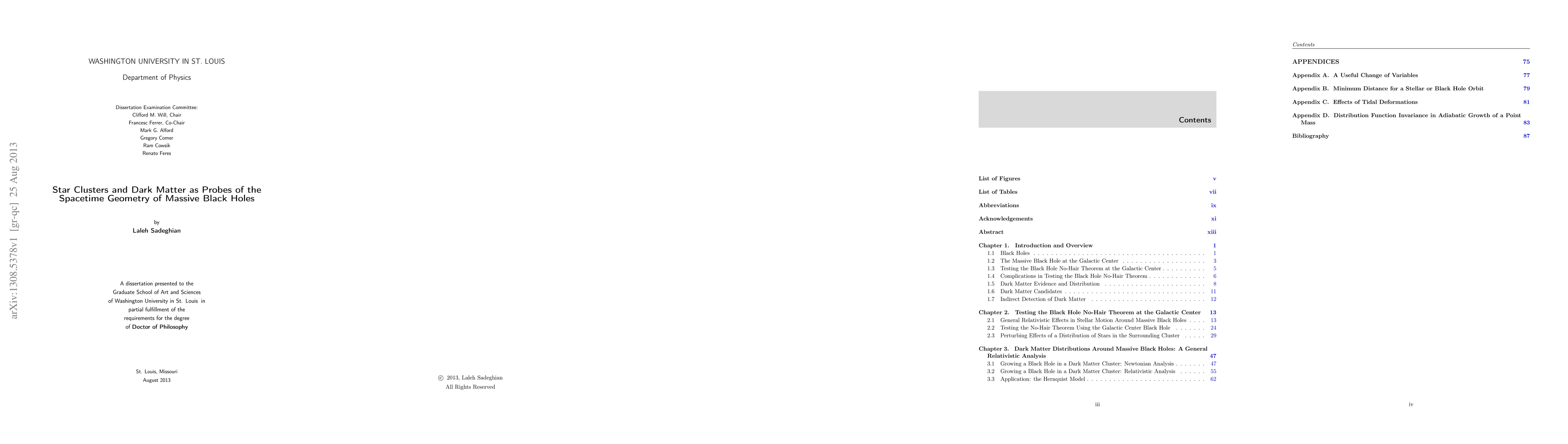 This thesis includes two main projects. In the first part, we assess the feasibility of a recently suggested strong-field general relativity test, in which future observations of a hypothetical class of stars orbiting very close to the supermassive black hole at the center of our galaxy, known as Sgr A*, could provide tests of the so-called no-hair theorem of general relativity through the measurement of precessions of their orbital planes. By considering how a distribution of stars and stellar mass black holes in the central cluster would perturb the orbits of those hypothetical stars, we show that for stars within about 0.2 milliparsecs (about 6 light-hours) of the black hole, the relativistic precessions dominate, leaving a potential window for tests of no-hair theorems. Our results are in agreement with N-body simulation results. In the second part, we develop a fully general relativistic phase-space formulation to consider the effects of the Galactic center supermassive black hole Sgr A* on the dark-matter density profile and its applications in the indirect detection of dark matter. We find significant differences from the non-relativistic result of Gondolo and Silk (1999), including a higher density for the spike and a larger degree of central concentration. Having the dark matter profile density in the presence of the massive black hole, we calculate its perturbing effect on the orbital motions of stars in the Galactic center, and find that for the stars of interest, relativistic effects related to the hair on the black hole will dominate the effects of dark matter.