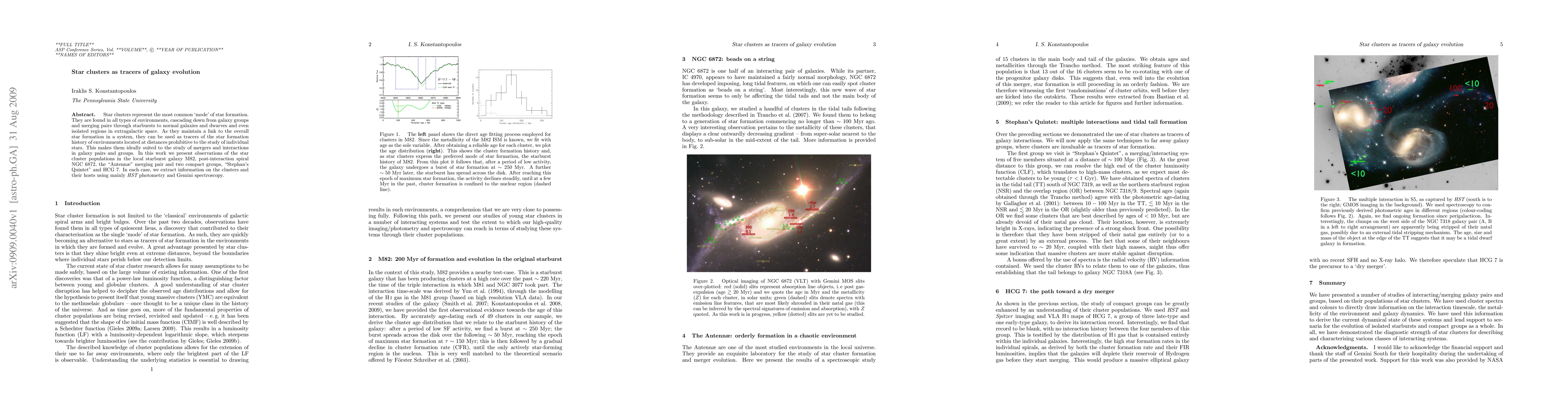 This paper investigates star clusters in various galactic environments, including M82, NGC 6872, the "Antennae" merger, and compact groups like Stephan's Quintet, to trace galaxy evolution using HST photometry and Gemini spectroscopy. Star clusters serve as effective tracers of the star formation history in galaxies, especially in regions where individual stars are difficult to study.
