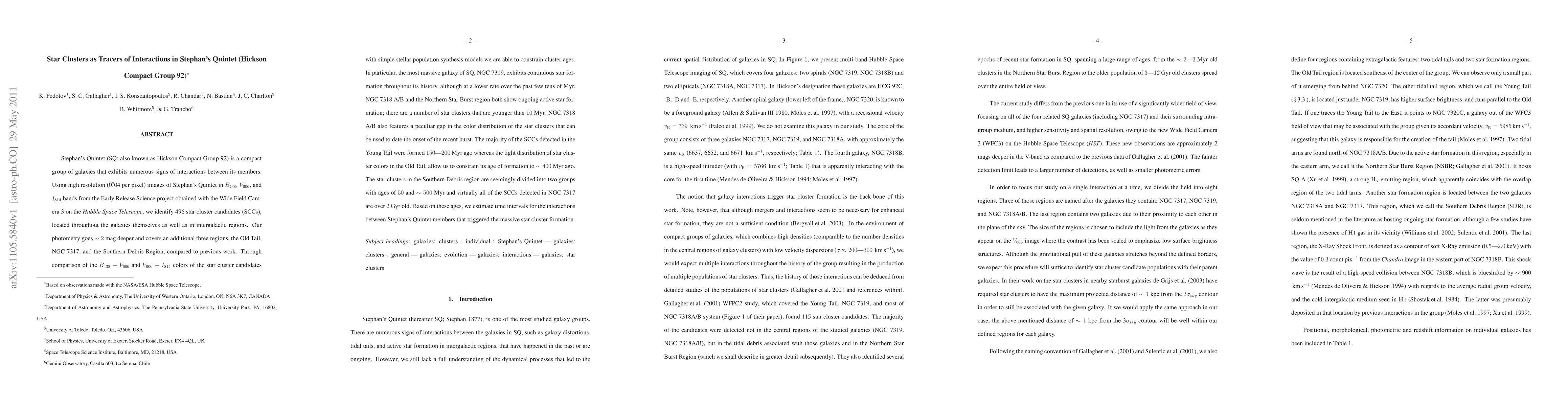 This paper identifies 496 star cluster candidates in Stephan's Quintet, revealing ongoing and historical star formation across its galaxies. The study estimates the ages of these clusters, suggesting interactions between group members triggered significant star formation events.