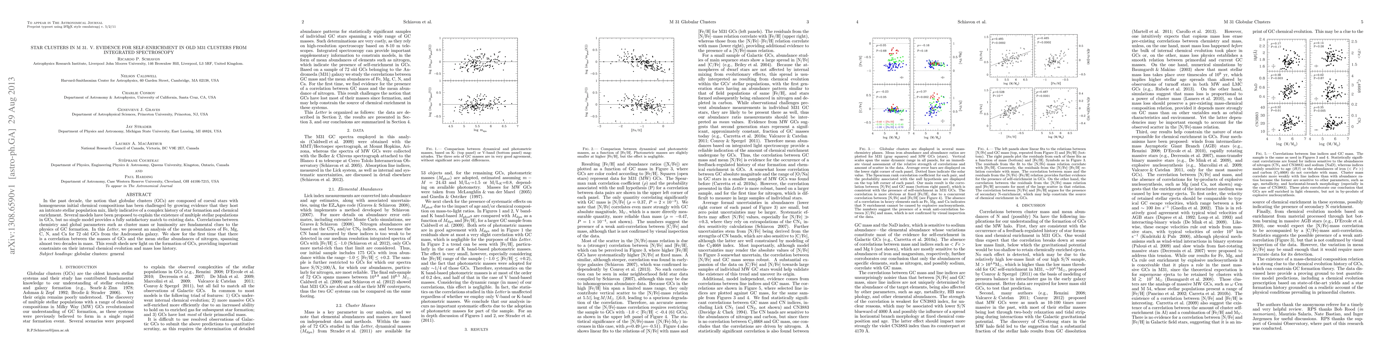 In the past decade, the notion that globular clusters (GCs) are composed of coeval stars with homogeneous initial chemical compositions has been challenged by growing evidence that they host an intricate stellar population mix, likely indicative of a complex history of star formation and chemical enrichment. Several models have been proposed to explain the existence of multiple stellar populations in GCs, but no single model provides a fully satisfactory match to existing data. Correlations between chemistry and global parameters such as cluster mass or luminosity are fundamental clues to the physics of GC formation. In this Letter, we present an analysis of the mean abundances of Fe, Mg, C, N, and Ca for 72 old GCs from the Andromeda galaxy. We show for the first time that there is a correlation between the masses of GCs and the mean stellar abundances of nitrogen, spanning almost two decades in mass. This result sheds new light on the formation of GCs, providing important constraints on their internal chemical evolution and mass loss history.