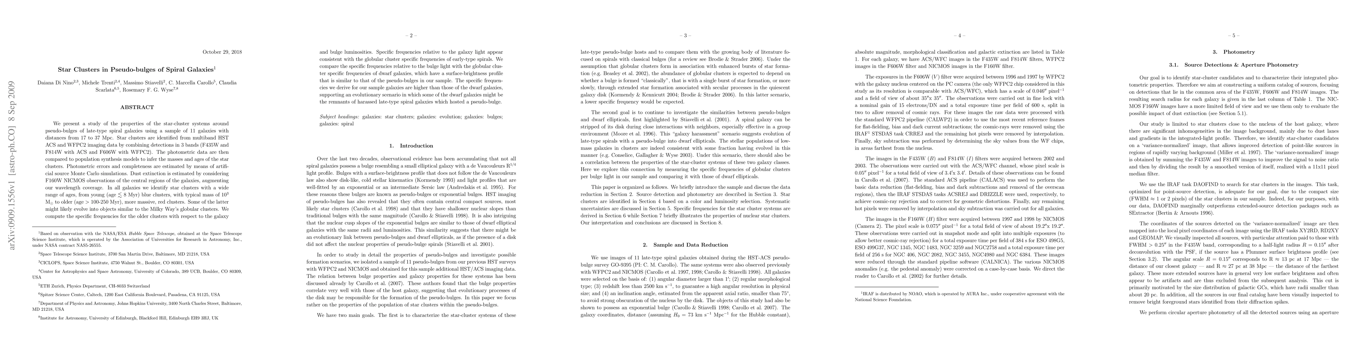 This study investigates star clusters in the pseudo-bulges of 11 late-type spiral galaxies, identifying clusters of varying ages and masses from HST imaging data. The research finds a diverse cluster population, with young blue clusters and older, more massive red clusters, some potentially evolving into Milky Way-like globular clusters.