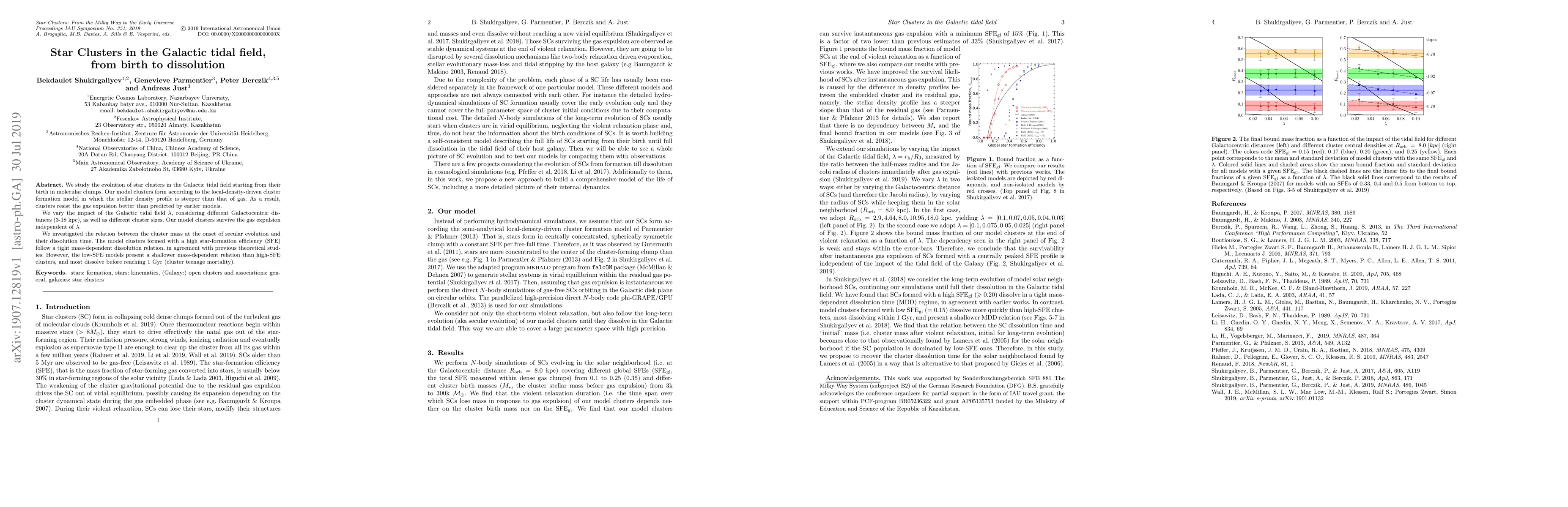 This paper examines the evolution of star clusters in the Galactic tidal field from their formation in molecular clumps to their dissolution, finding that clusters resist gas expulsion better than earlier models predict. It shows that cluster survival is largely independent of the tidal field strength, with high star-formation efficiency clusters following a mass-dependent dissolution time, while low-efficiency clusters often dissolve within a billion years.
