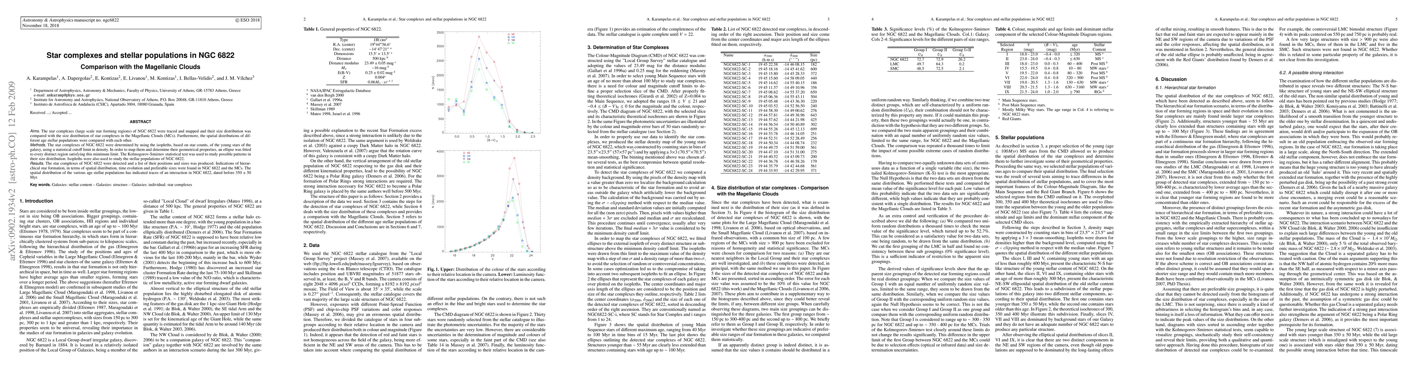 This paper maps and analyzes star complexes in NGC 6822, comparing their size distribution and spatial distribution of stellar populations to those in the Magellanic Clouds, revealing hierarchical star formation patterns and evidence of past interactions.